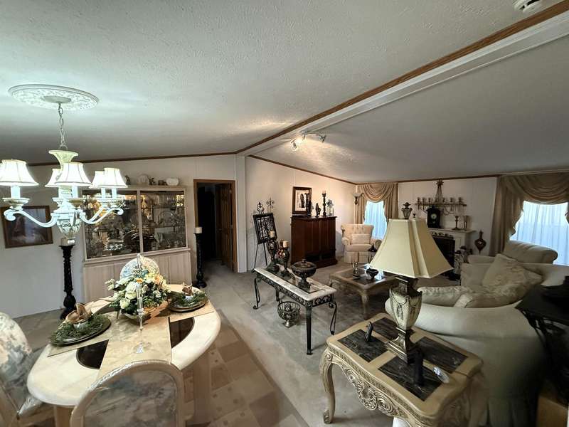 This 3 bedroom, 2 bath mobile home offers 1,680 sq ft of comfortable living space. The large baker's kitchen is complete with ample counter space, abundant cabinetry, and pantry. A separate dining area provides space for dinners or hosting guests. The generous primary suite features a large walk-in closet and a spacious ensuite bath with a jetted tub and separate shower. At the opposite end of the home, you'll find two additional bedrooms and a full bath, offering privacy and flexibility for guests, or a home office. Additional highlights include a 2.5 car garage for extra storage. Furniture available. Ideally located near shopping, dining, and medical facilities, this home blends comfort, functionality, and convenience. Don't miss this great opportunity!