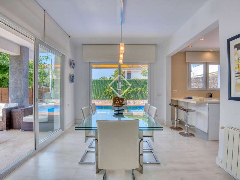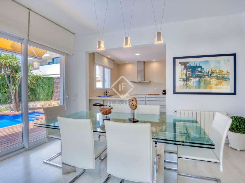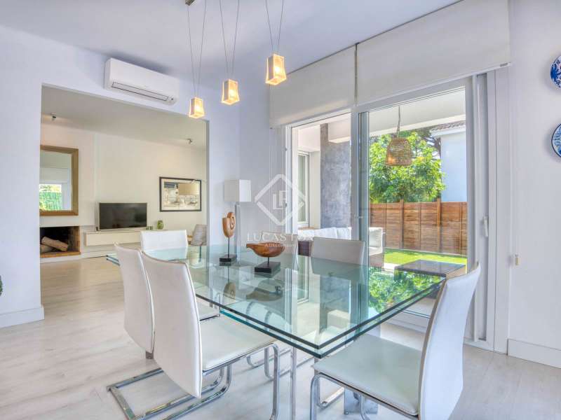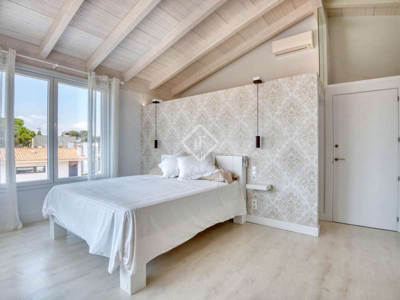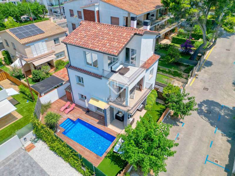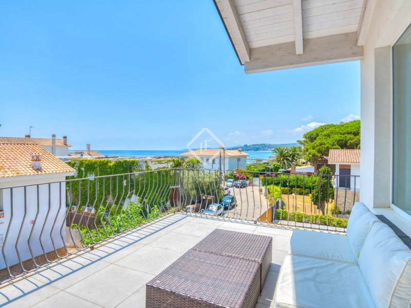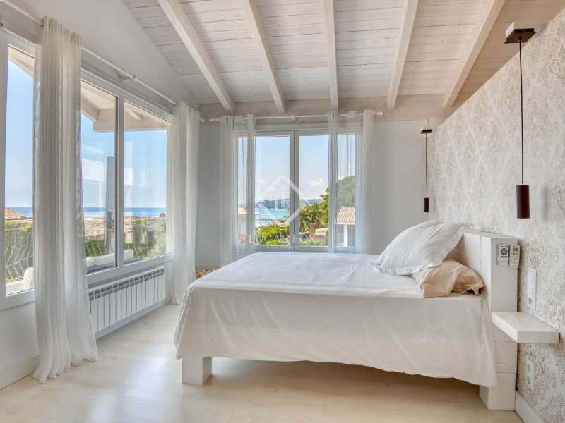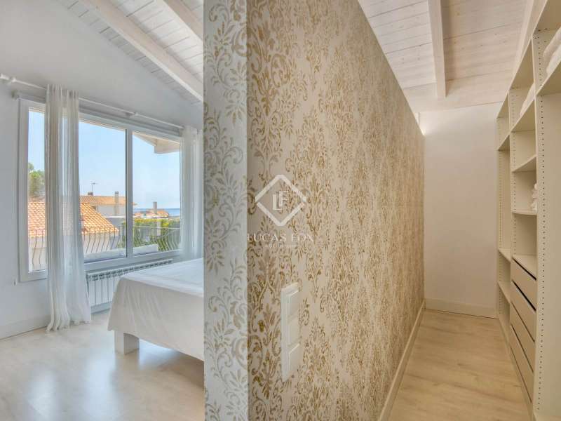 Lucas Fox presents this elegant and bright villa on the second line of the sea, in one of the quietest and most sought-after areas of Sant Antoni de Calonge, just steps from the beach. This comfortable property has been tastefully renovated in a functional Mediterranean style, making it ideal as a primary residence, a holiday home, or an investment thanks to its tourist license. It is spread over three floors connected by an elevator and stairs and has spacious and bright spaces, facing the sea and the garden. On the ground floor, an entrance hall leads to a spacious living-dining room with an open kitchen, fireplace , and direct access to the porch, garden , and saltwater pool. This floor also includes a guest toilet, access to the garage, and a laundry area with a machine room. The first floor houses three double bedrooms and a spacious full bathroom . Two of the bedrooms have direct access to a terrace with pleasant views of the sea and surrounding area. The upper floor is dedicated to the main bedroom, with open sea views, a dressing room, a seating area, a private terrace and an elegant private bathroom with a shower and bathtub. The carefully landscaped plot offers garden areas and an inviting saltwater pool, perfect for enjoying the Mediterranean climate in complete privacy. The house is equipped with gas heating, air conditioning, and all the necessary amenities for year-round living. The location is unbeatable: in a very quiet residential area, just a few steps from Sant Antoni beach, known for its seafront promenade, crystal-clear waters and family-friendly atmosphere. A practical and bright property, designed to enjoy the Costa Brava lifestyle in total comfort and with excellent prospects for vacation rentals.