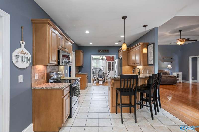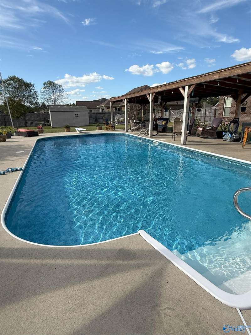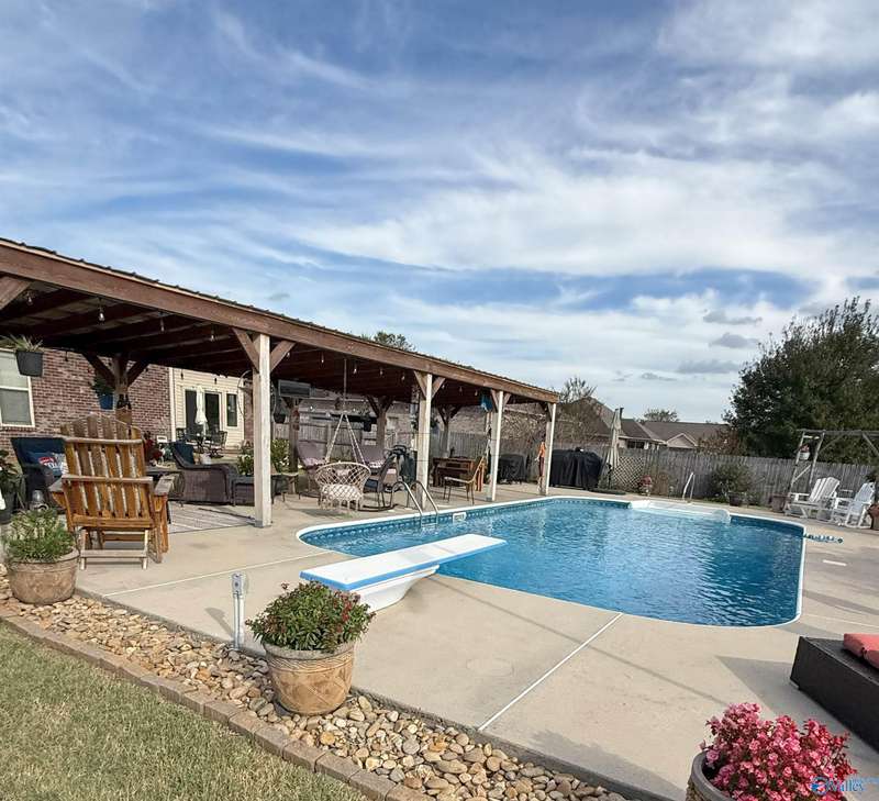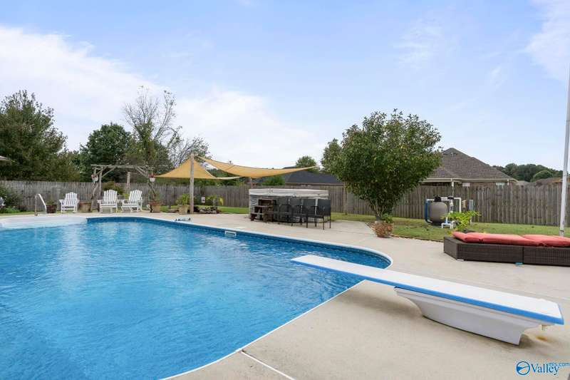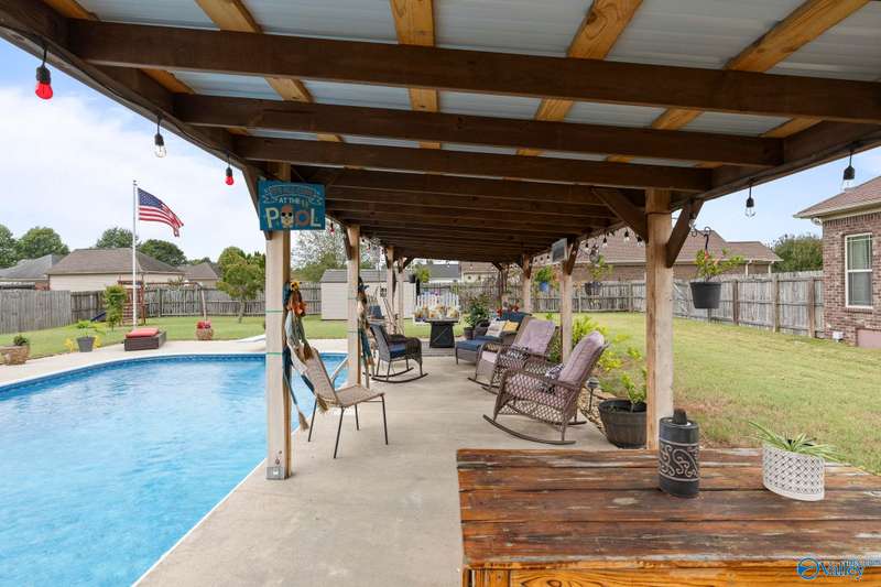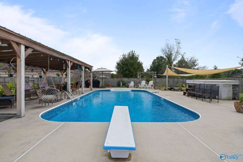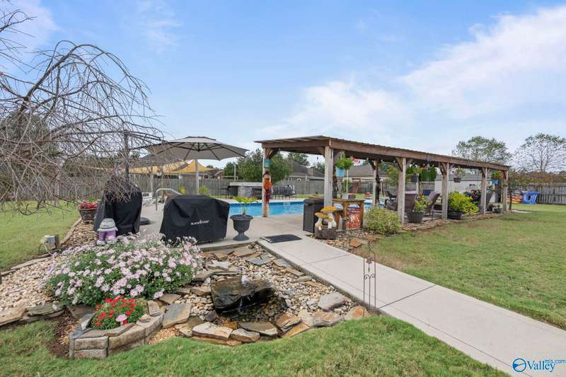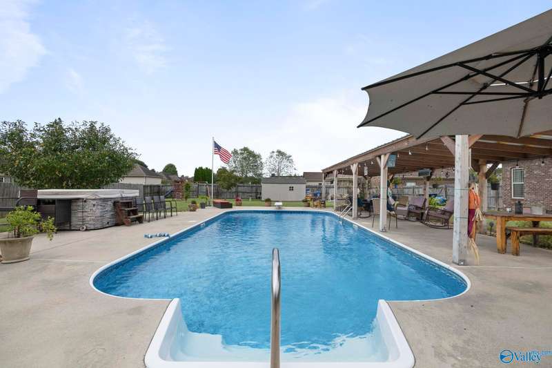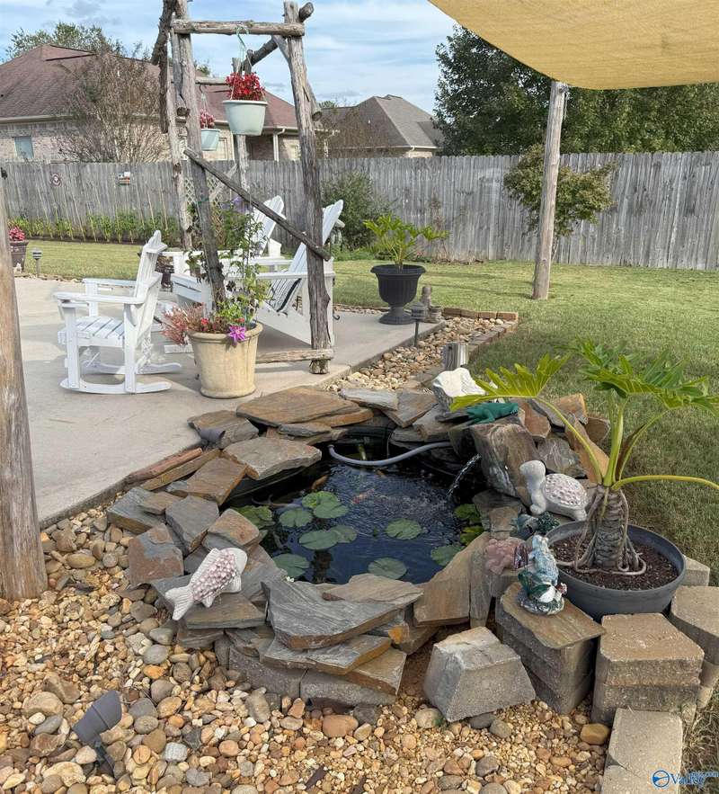 Price drop on this neighborhood hangout! Relax and entertain in a backyard made for fun—saltwater pool, hot tub, covered pavilion, fish pond, and still plenty of yard for play or gardening, all within a privacy fence. Inside, enjoy one-level living with 3 bedrooms, 2 baths, and a study. Elegant finishes include crown molding, wainscoting, and granite. Wood flooring in main areas, vinyl plank in bedrooms—no carpet! The primary suite offers two walk-in closets, tiled shower, and jetted tub. No HOA! New roof coming soon!