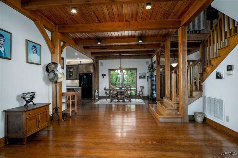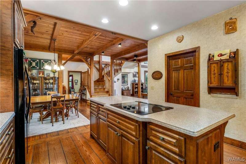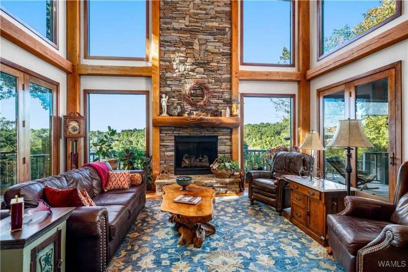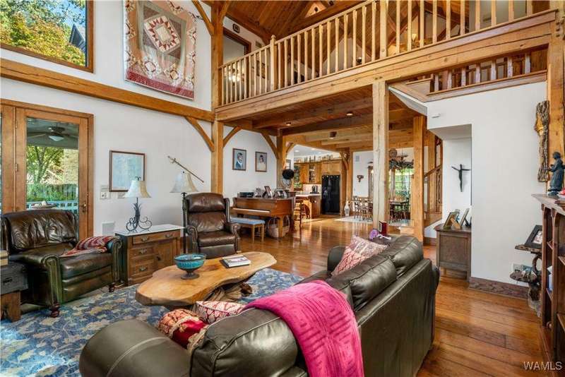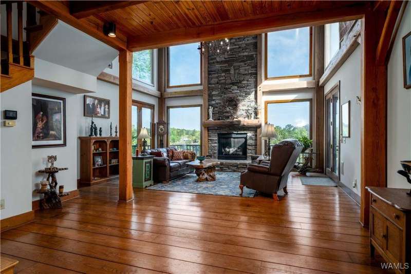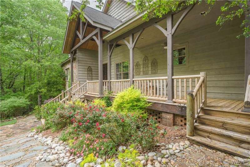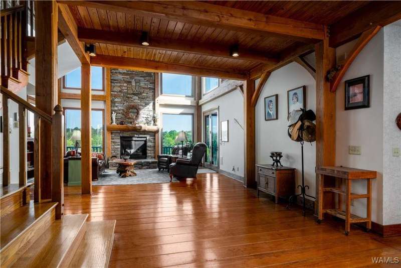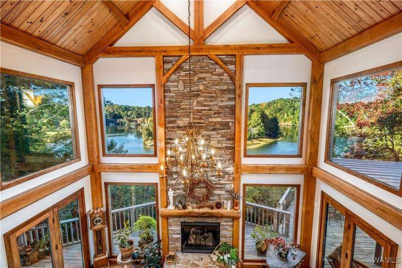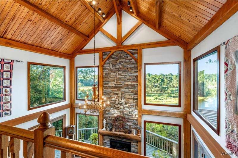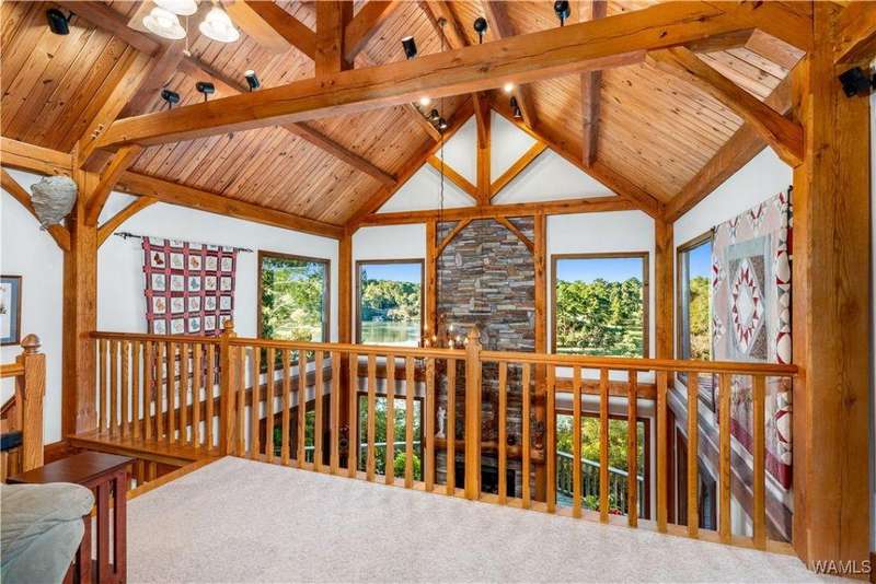 Stunning custom design and build nestled on 8.31 Acres. Breath taking lake views. The woodwork and craftmanship is amazing. 10 Plank word flooring. Solid oak timber frame. Tongue and groove on the 28 ceiling. Gas stone Hearth fireplace. Perfect layout on main level with laundry room adjacent to master. Nice office/guest bedroom/nursery on main level. Open kitchen combo. Timber frame loft with library. Sewing/craft room. 3 car garage. Garage apartment with kitchen that has inside or separate outside access. Great storage and closet space throughout the home. Enjoy your lake view with complete privacy and Jacuzzi. 90 Waterfall. 3 boat covered dock with diving. Full irrigation system. Well water. Walking trails with bridges. Brick and cedar siding. Way to much to list. A true must see!