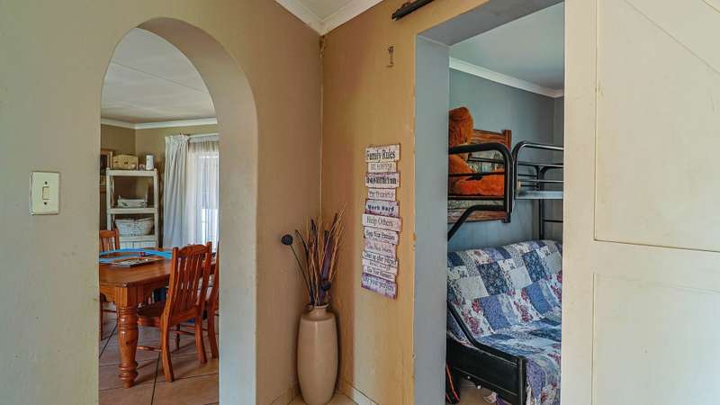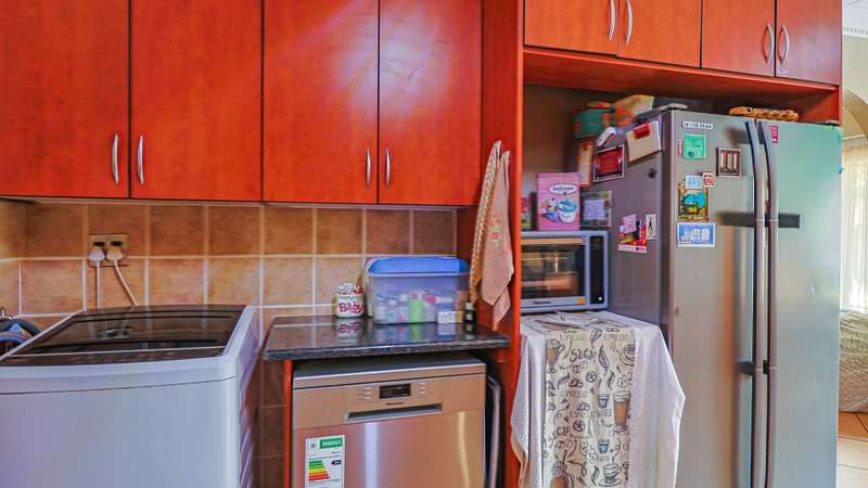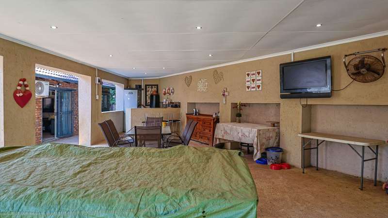 This inviting 4-bedroom family home in Rooihuiskraal offers space, comfort, and the bonus of a flatlet for extended family or rental income. Main Home Features: 4 Bedrooms – including a versatile room with built-in cupboards that can serve as a study or guest bedroom. Welcoming Entrance Foyer leading into generous living areas – a large dining room and lounge, with air conditioning in both the lounge and main bedroom. Spacious Kitchen – Ample cupboards and workspace with room for three appliances. With its size and layout, it’s easy to create your own breakfast nook. Domestic Facility – Separate outside toilet. Extra Storage – Wendy house included. Entertainment & Outdoor Living: Extra-Large Covered Patio – With built-in braai and bar, perfect for gatherings. Spacious enough for a pool table and large dining setup. Backyard with Side Gate Access – Safe play space for kids or pets, plus access for additional parking. Double Tandem Carport – Secure parking for multiple vehicles. Flatlet: 1 Bedroom with Bathroom Open-Plan Kitchen & Lounge Private Courtyard & Double Carport An ideal rental opportunity or private space for parents, teens, or guests. Why This Home? With its generous layout, flexible bedroom setup, and a flatlet for extra income or multi-generational living, this property is a true family gem in Rooihuiskraal. Close to schools, shopping centres, and main routes, it balances everyday convenience with space to entertain and grow. Asking Price: R2,195,000