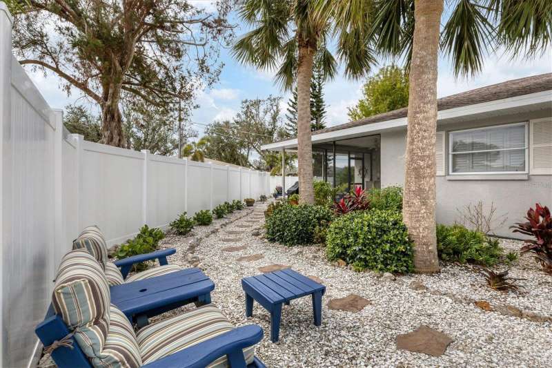 This pristine-like new home is a gem, with an extra-large private vinyl-fenced yard with 2 gates that require minimal maintenance, complete with a firepit and raised beds for the garden. The outdoor space features an outdoor shower, a new paver patio, and a walkway surrounded by lush landscaping. Inside, the home boasts all-new six-panel doors and a new hurricane front door. The living dining combo and family room lead to the lanai, which is perfect for entertaining. The master bathroom has been newly remodeled, and there is an update to the guest bathroom. Plantation shutters adorn all windows, and crown molding is found throughout. Attached is a 2+ garage room for plenty of storage. The kitchen has a breakfast bar and extra storage, The house has a freshly painted exterior and interior. With the newly updated electric panel, everything is well maintained for your added peace of mind. It is located in a sought-after area adjacent to Lemon Bay Park and offers 210 acres with walking trails and a bird sanctuary. Close to beaches, shopping, Historic Dearborn St, restaurants, and a farmers' market in season. This home offers the perfect combination of modern updates and a convenient location for enjoying all that Florida has to offer.