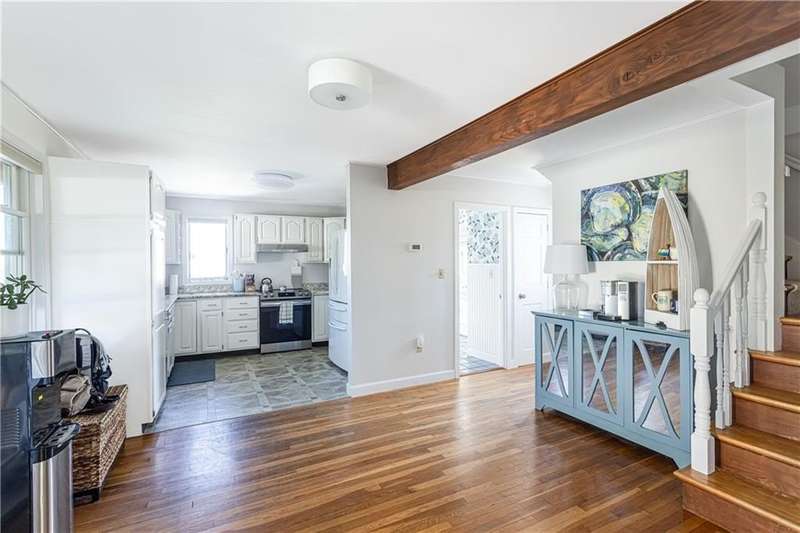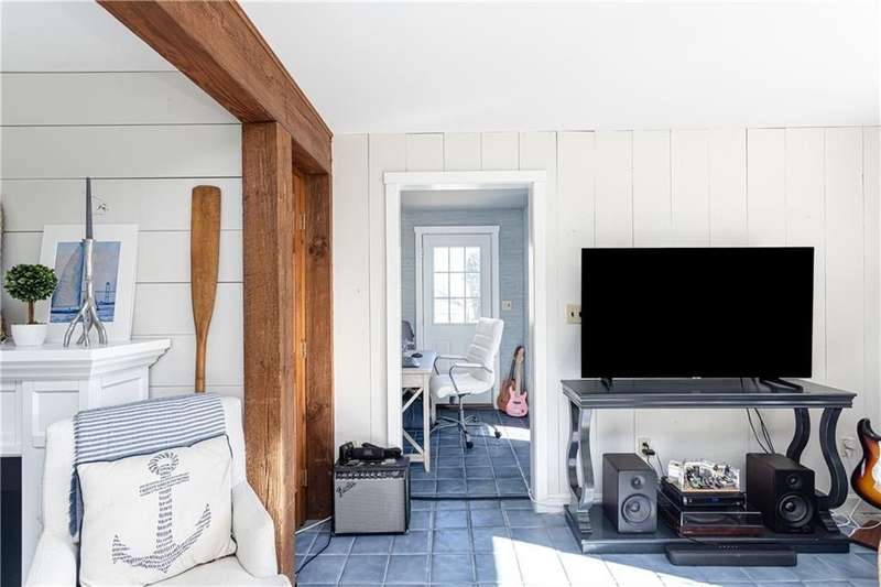 A coastal home with a story to tell—now a modern Portsmouth retreat! Originally a Prudence Island fishing cottage, this unique residence was transported to the mainland decades ago and thoughtfully expanded over the years. Blending coastal character with thoughtful improvements, you’ll appreciate the new heating system, ductless mini-splits with AC, the new septic system, and a whole-house generator. From the welcoming front porch, step inside to a warm and inviting main level. The sun-filled family room is a highlight, seamlessly connected to the dining space and the coziest room for relaxation and gathering! A bonus area off the family room is ideal as an office or homework room. A convenient half bath completes the main level. Upstairs, you'll find three bedrooms and a full bathroom with a tub/shower. Convenient deck access for grilling and entertaining, with an expansive backyard for fire pit hangouts, gardening and play. Set in Northern Portsmouth, you'll have easy access to local schools, Route 24, and a short drive to waterfront dining in Island Park or downtown Bristol!