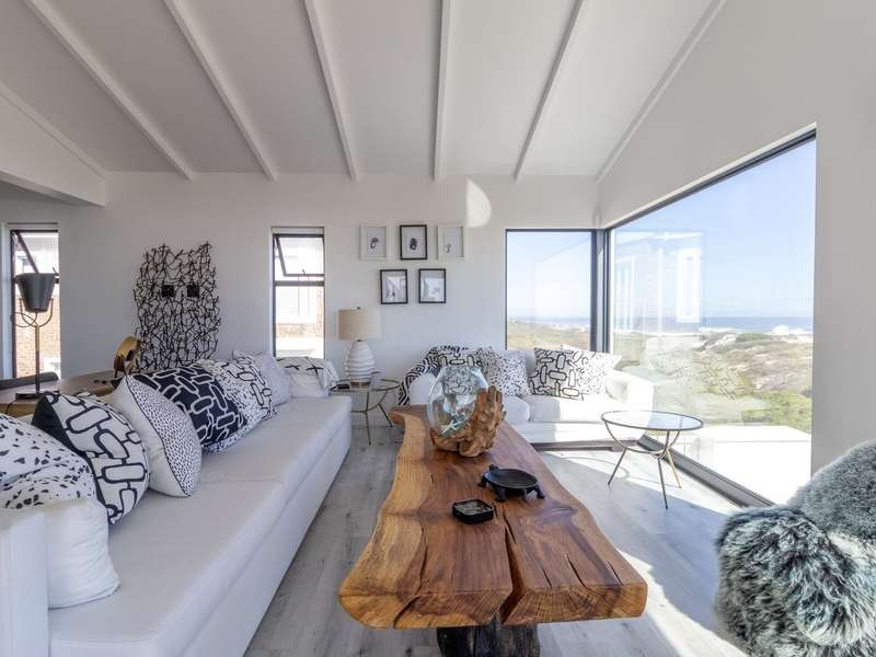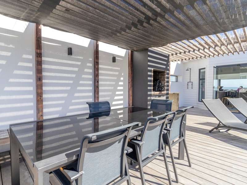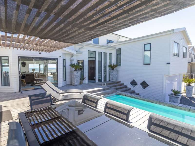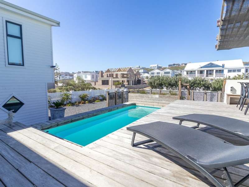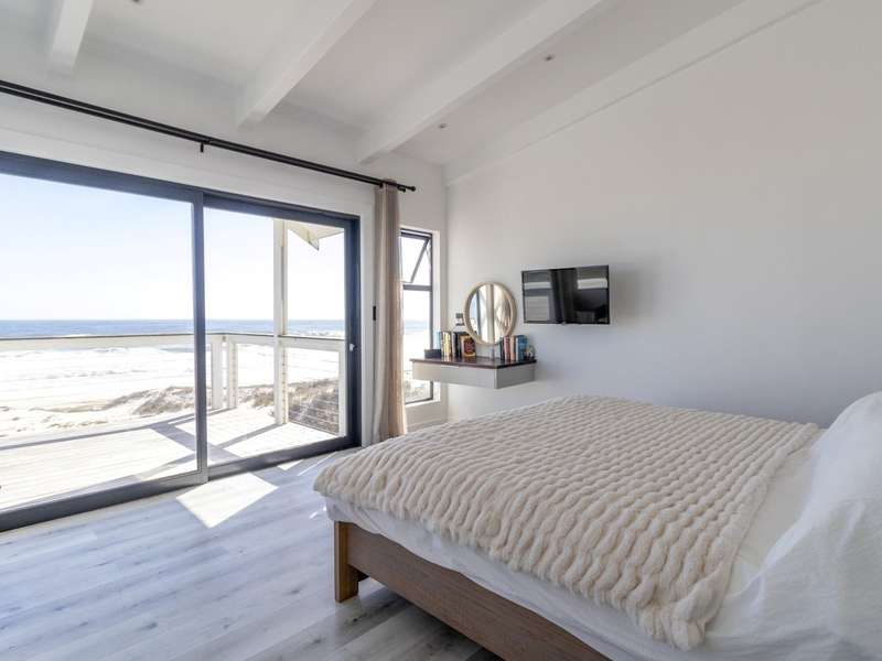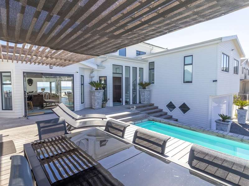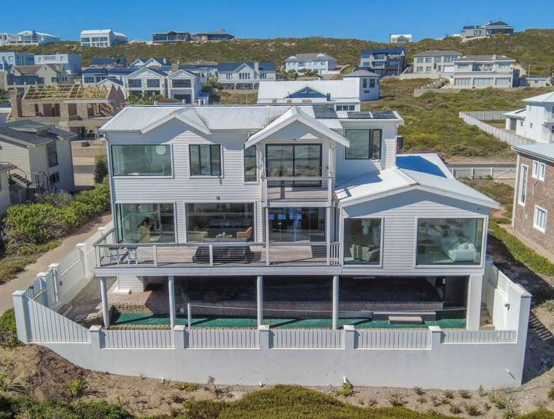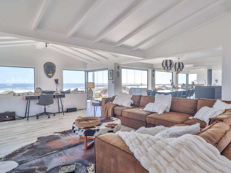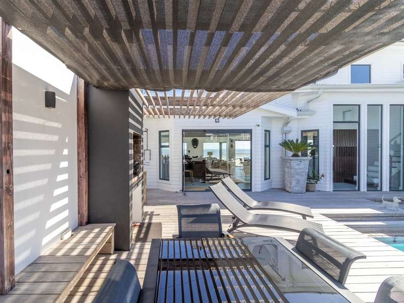 Experience the absolute beachfront lifestyle in this exquisite five-bedroom, classic white timber frame home in Yzerfontein. It offers the ideal sanctuary for those seeking a coastal escape, blending modern sophistication with the natural beauty of the Pearl Bay greenbelt and shoreline. With panoramic sea views across the Atlantic Ocean, this home also provides exceptional space for both relaxation and entertaining. Whether used as a family weekend/holiday getaway or an airbnb investment, it offers the rare opportunity to live right on the coastline, with direct access to the pristine white sandy beach, just a few meters away. From the fully equipped kitchen and spacious open-plan living spaces to the outdoor entertainment deck (with built-in braai) and heated pool (with sliding timber deck cover), every corner of this home is designed with comfort and views in mind. With five bedrooms (each with en suite bathroom) and high-class features such as underfloor heating, this home promises a life of luxury and ease. The property also features an off-grid solar power system with panels, inverter and batteries. Additional extras include, double eye-level ovens, integrated fridge/freezer, induction cooker and gas hob, a dedicated coffee station, and extra storage space with the potential for a wine cellar. Own this piece of paradise and embrace the very best of the beach life in Yzer, where every sunset becomes part of your daily routine.