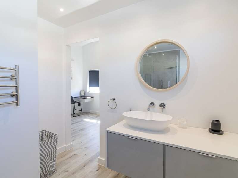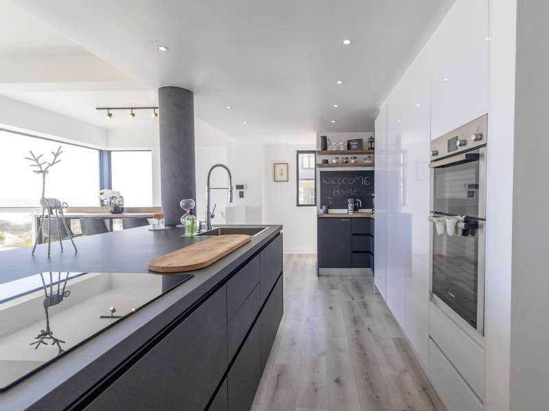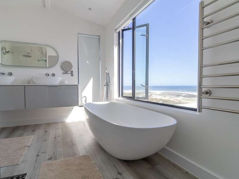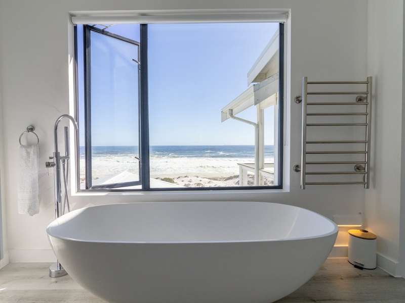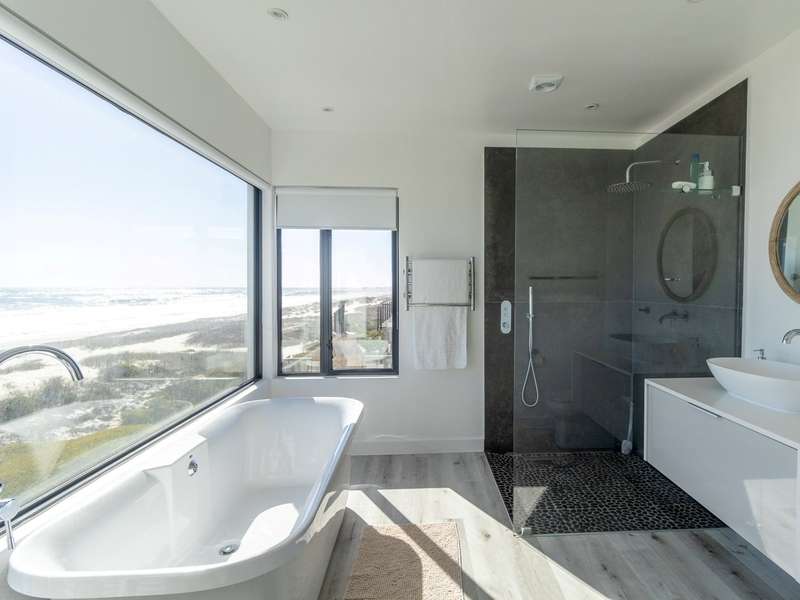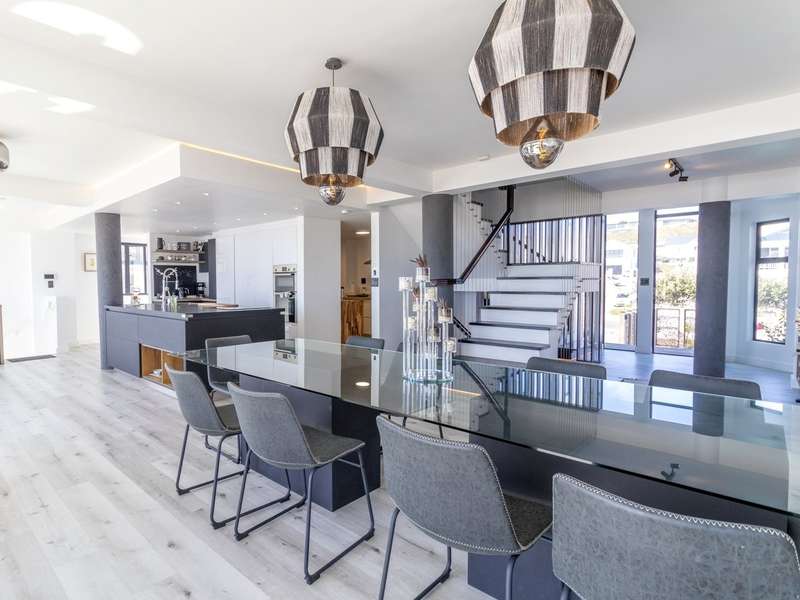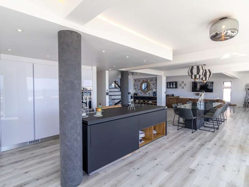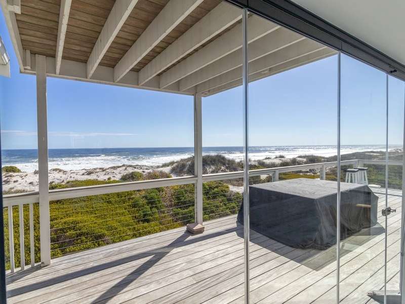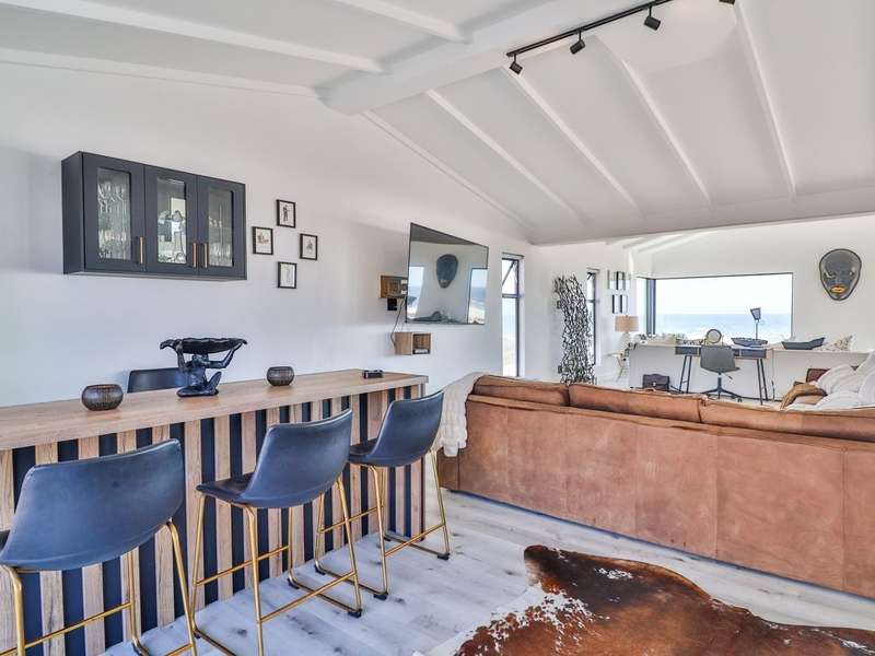 Experience the absolute beachfront lifestyle in this exquisite five-bedroom, classic white timber frame home in Yzerfontein. It offers the ideal sanctuary for those seeking a coastal escape, blending modern sophistication with the natural beauty of the Pearl Bay greenbelt and shoreline. With panoramic sea views across the Atlantic Ocean, this home also provides exceptional space for both relaxation and entertaining. Whether used as a family weekend/holiday getaway or an airbnb investment, it offers the rare opportunity to live right on the coastline, with direct access to the pristine white sandy beach, just a few meters away. From the fully equipped kitchen and spacious open-plan living spaces to the outdoor entertainment deck (with built-in braai) and heated pool (with sliding timber deck cover), every corner of this home is designed with comfort and views in mind. With five bedrooms (each with en suite bathroom) and high-class features such as underfloor heating, this home promises a life of luxury and ease. The property also features an off-grid solar power system with panels, inverter and batteries. Additional extras include, double eye-level ovens, integrated fridge/freezer, induction cooker and gas hob, a dedicated coffee station, and extra storage space with the potential for a wine cellar. Own this piece of paradise and embrace the very best of the beach life in Yzer, where every sunset becomes part of your daily routine.