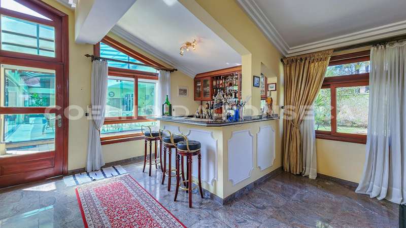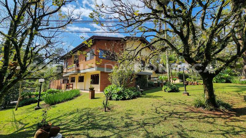Casa em Condomínio no bairro Aldeia da Serra com 860m² área construída, 4 dormitório(s), 4 suíte(s), 8 vaga(s), 7 banheiro(s), piscina, esquina, escritório, sauna, depósito, ar condicionado, dep. de empregados, varanda, pé direito duplo.