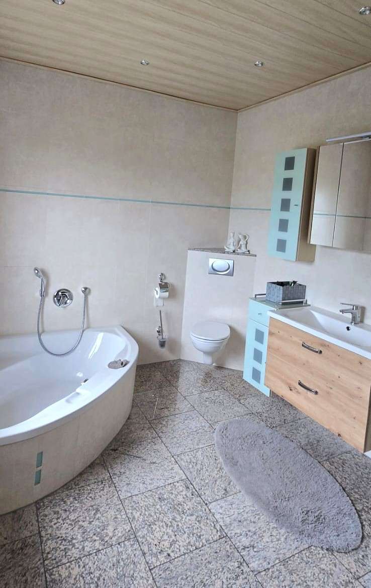 The beautifully situated newly built two-family house from the year 2003 offers you a very pleasant living comfort. A large terrace overlooking the landscape completes the picture. All gardening is done. A barbecue area is available, which can be used as well as the wood storage. The property is in a quiet location and invites you to linger. The tenancy begins on the next first of the month and is scheduled for the time being until 31.05.2021. Please take into account in your plans. The fitted kitchen stays in the house. Likewise the made curtains. Everything else clarifies the lease. For the rental of the deposit (3 months rent) a self-assessment, the last three pay slips, and a bank statement required. Pets of all kinds are not desired. !!! PLEASE WRITE IN WRITING !!!