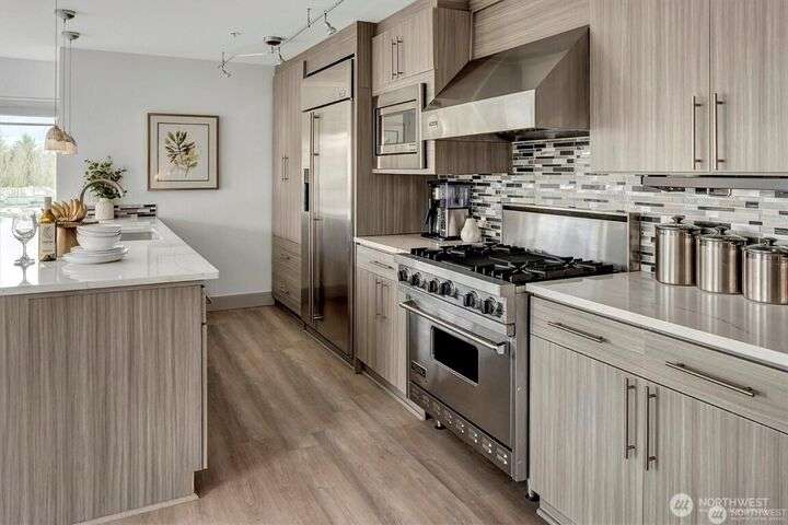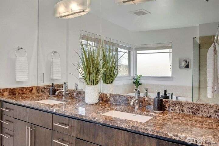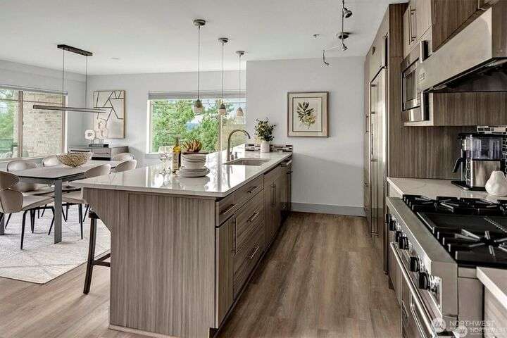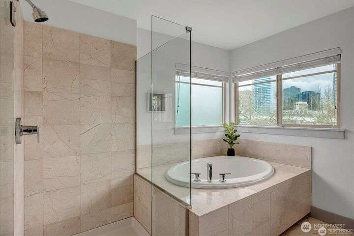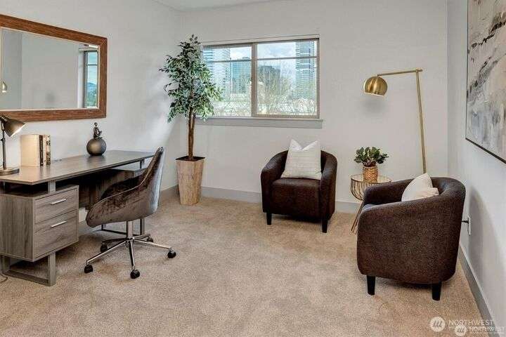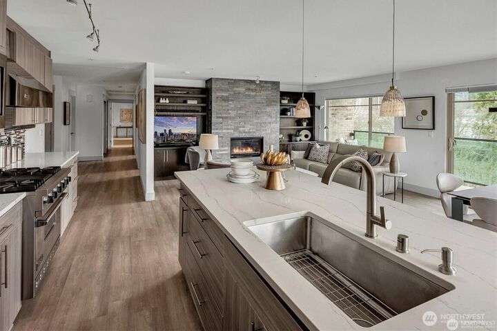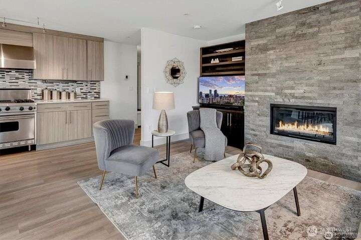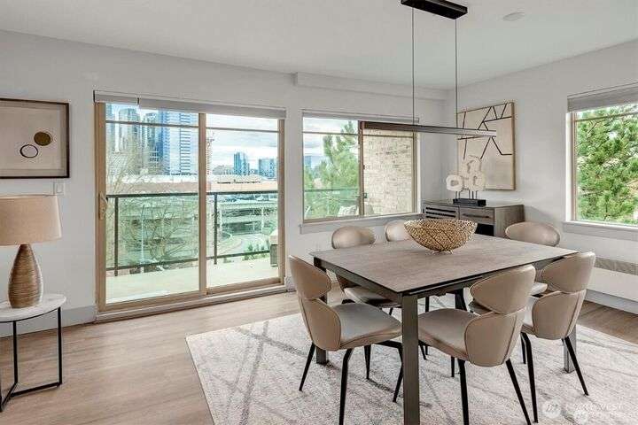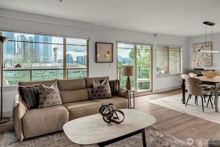 Available now! ELEGANT PENTHOUSE. 3 BDRMS + bonus/den, AC, 3 parking spaces, 2 Baths, 2 gas fireplaces, 3 Storage units, rooftop deck. Elevated urban luxury living. Sophisticated Chef's kitchen, new counter tops, custom cabinetry, & high end appliances. Viking range, GE Monogram Fridge. Primary Suite with expansive 20' closet w/ built ins, fireplace, + sitting area/den. Lux Primary Bath w/ view window. Huge deck, expansive views of DT Bellevue. Close to everything DT Bellevue has to offer. Parks, Bistros, Boutiques, and Bel Square. Unit encompasses entire side of top floor. Rooftop deck. Highly rated schools. Sophistication meets functionality. Dogs ok case by case. One year minimum lease. WSG $250. Appointment only. Owner is a WA licensee.