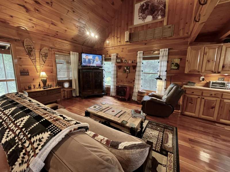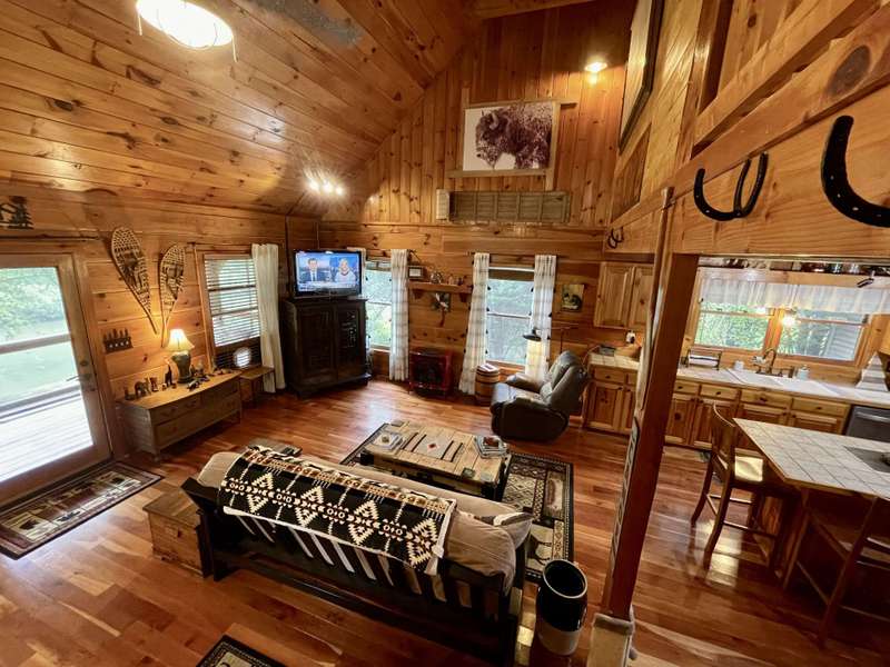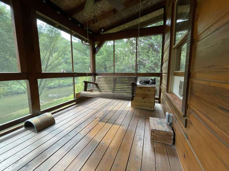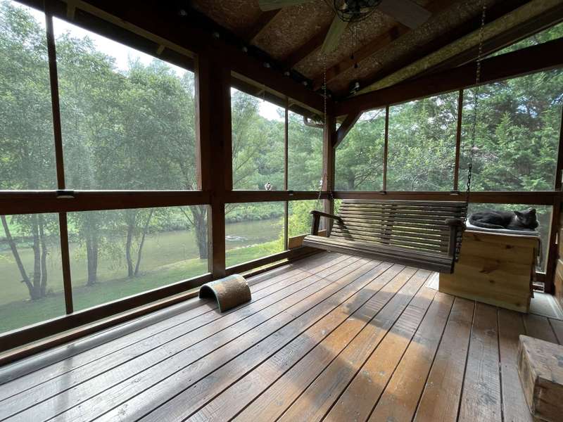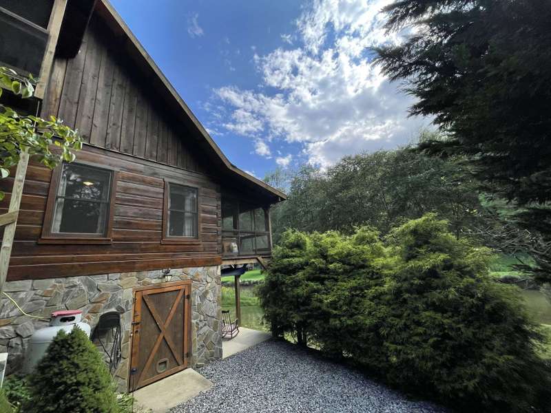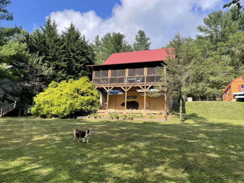 The RIVER LIFE is calling, and there's no better spot to be than this mountain cabin. On the banks of the New River in Lansing, NC. It's a nature lover's dream with the ability to walk directly out your door through a grassy lawn right into the cool, clear water of the New River. Relax on a tube, take a kayak trip, cast a line, or simply relax on the porch swing while listening to the calm flow go by. The cabin features a large, open concept kitchen/living/dining area with vaulted ceilings leading to a screened porch across the riverside of the house. Full bath, laundry, and additional seating/office area complete the main level. Upstairs is complete with a loft bedroom, half bath, and additional bedroom with a nice, screened porch sitting area to enjoy views of the river while having your morning coffee. For your guests, there's a fully equipped tiny home complete with a full bath, a mini kitchen, and two sleeping lofts. It could even be used as a rental for additional income. In addition, a small shed is outfitted as a workout room, and underneath the house, walk-in storage. Call for more information and a private viewing of our listing H106.