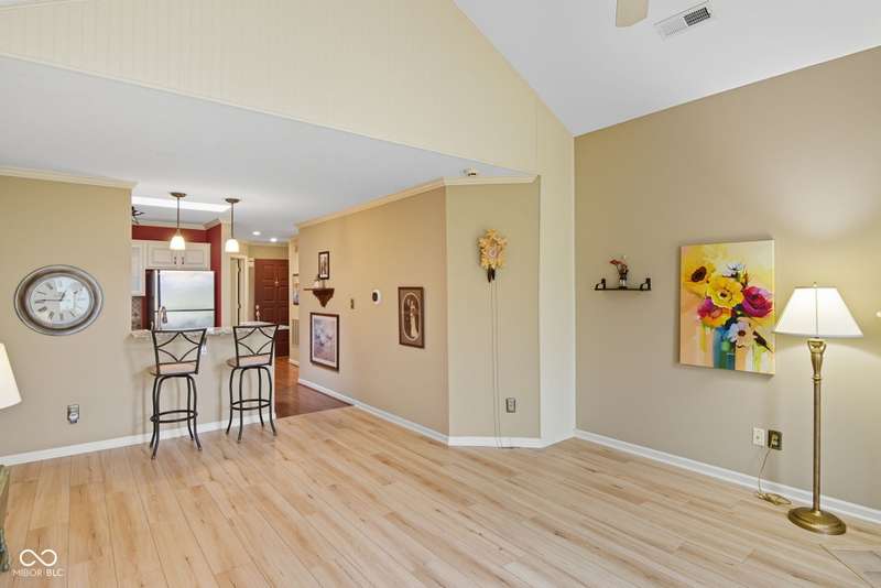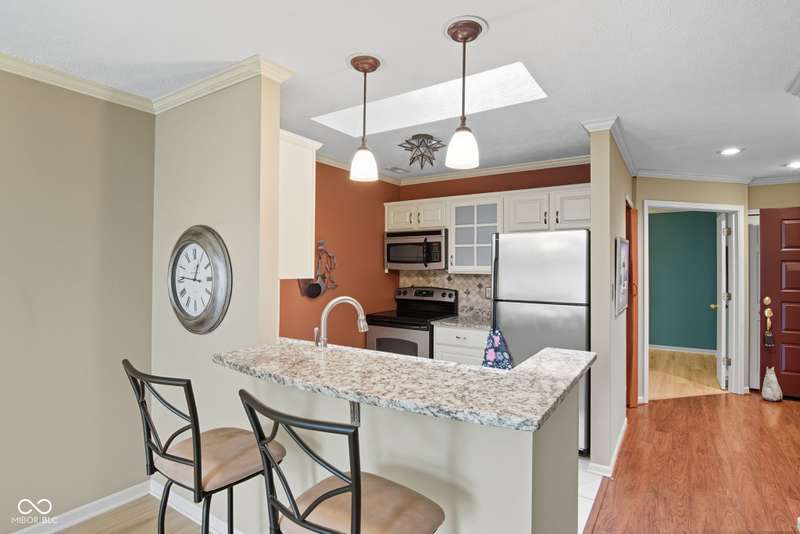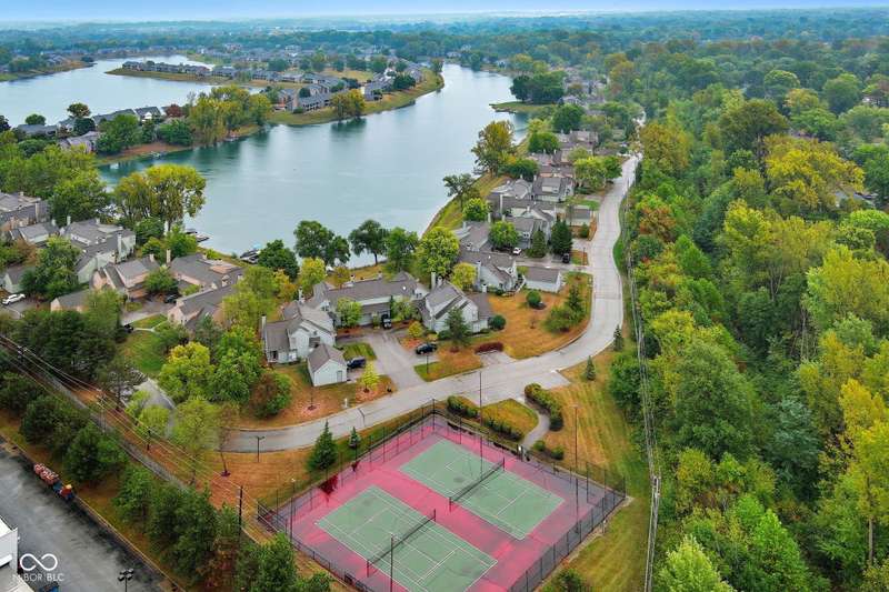 Maintenance Free Living at Popular Harbour Club! Gorgeous Updated Lakefront Condo! Relax on your rebuilt Balcony (2022) New Storm door and door (2024). Beautiful new hardwoods throughout! Spacious Eat-in kitchen with breakfast bar and granite countertops. Large Master Suite with walk in closet and tiled bath! 2nd bedroom could be used for office. Furnace (2024). All Appliances Stay! Storage area below! Community amenities include: pool, boating/kayaking, pickleball and tennis courts, walking paths, small beach area for kids and doggy stations. Convenient location near Keystone at the Crossing, Carmel, Nora and Broad Ripple and the interstate.