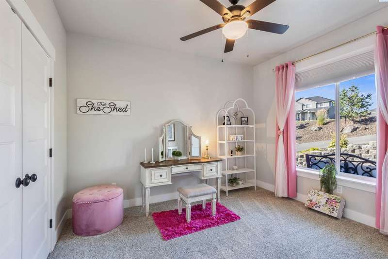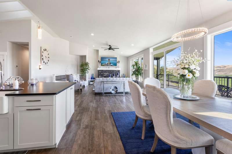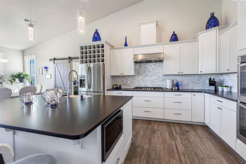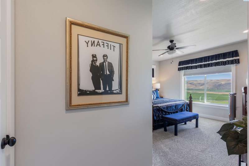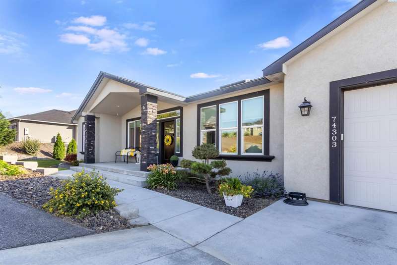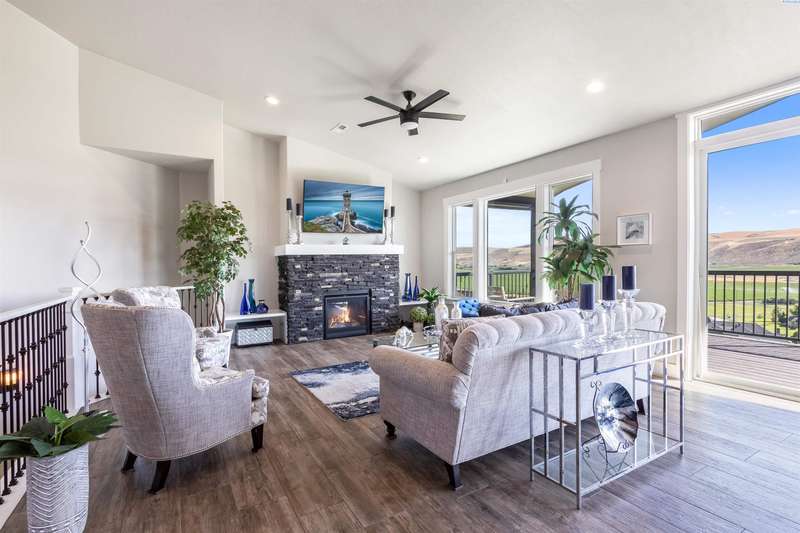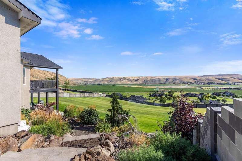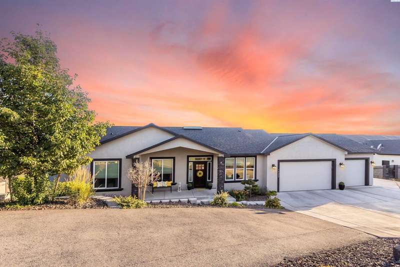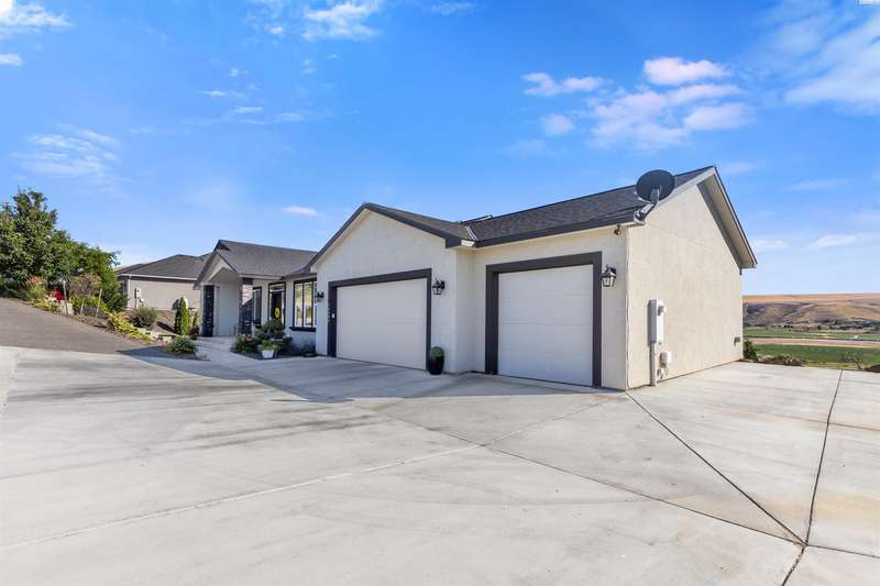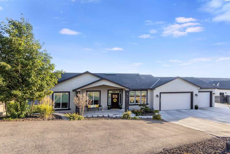 MLS# 285494 Welcome to this beautiful rambler with a daylight basement - perfectly positioned to capture unobstructed southern views of the Horse Heaven Hills. Built in 2017, this home offers endless possibilities for multi-generational living, guest accommodations or a separate apartment (would require a lower level door between levels). Step into a welcoming foyer with skylights for lots of natural light. Located just off the foyer is a den with French doors that provides a flexible space for a home office or library. Enjoy the easy care plank tile flooring throughout the main living areas (carpet in hallway, den & bedrooms). The great room features vaulted ceilings, a cozy gas fireplace and lots of large windows that frame the breathtaking views. The chef-inspired kitchen features leathered granite countertops, a farmhouse sink, full tile backsplash, stainless steel appliances, wine storage, pantry and a large breakfast bar island with storage and pendant lighting above. A sliding barn door leads to a convenient utility room with overhead cabinets, counter & sink. The primary suite also enjoys sweeping views and includes a spa-like bath with quartz countertops, dual sinks, freestanding tub, mud-set tile shower, private water closet and a large walk-in closet too! Two additional guest bedrooms on the main level share a .75 bathroom. The walk-out daylight basement has a family room, kitchenette, 14x11 bedroom with an 8x10 walk-in closet and a .75 bath - ideal for extended stays or separate living quarters. There's tons of storage throughout PLUS an insulated 13x7 exterior accessed storage room with concrete flooring and lighting. Updates include: 50 gallon hybrid water heater ('22), Crusader water softener system ('22), 130 MPH rated Owens Corning Durations shingles ('23) and a 4 ton American heat pump ('25). Easy exterior access makes enjoying the backyard seamless. And yes - the view from the lower level is just as awe-inspiring. Situated on a 1.04 acre lot, there's ample space to create your dream outdoor oasis - maybe a future in ground swimming pool? With easy freeway access and a short drive to the Queensgate shopping area (with the the new Costco, restaurants, theater and more - your dreams of country living with the convenience of city amenities are right here!