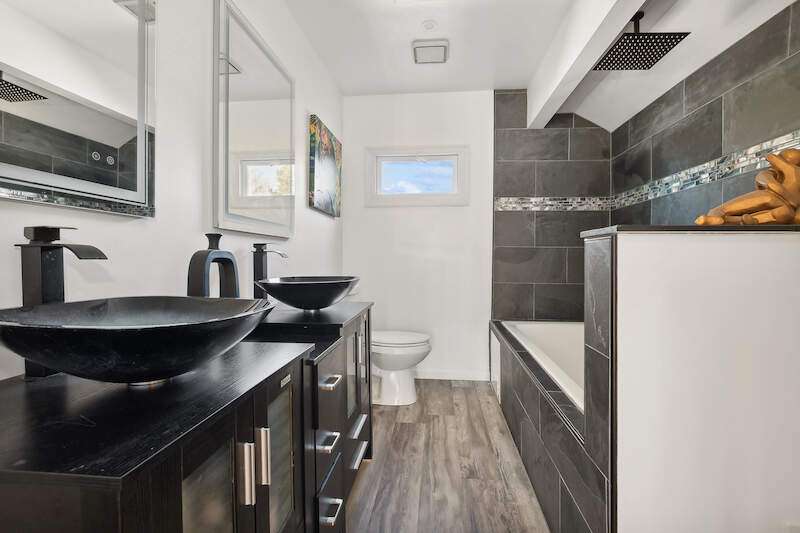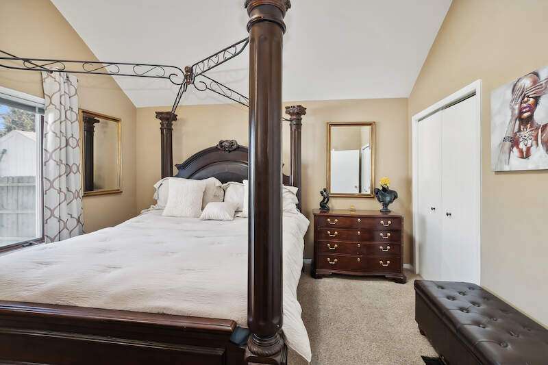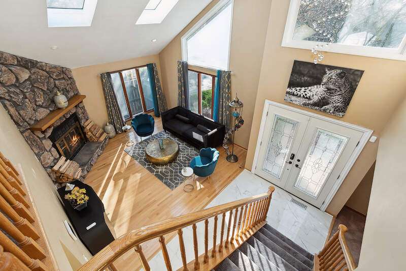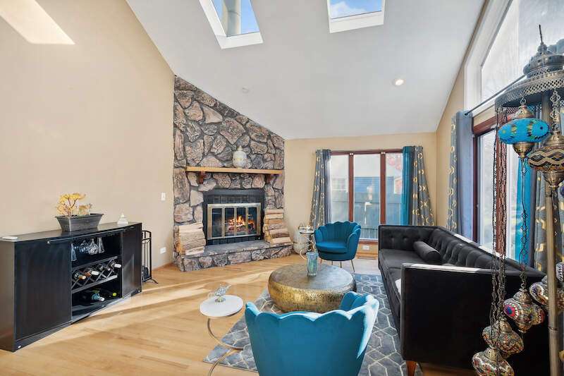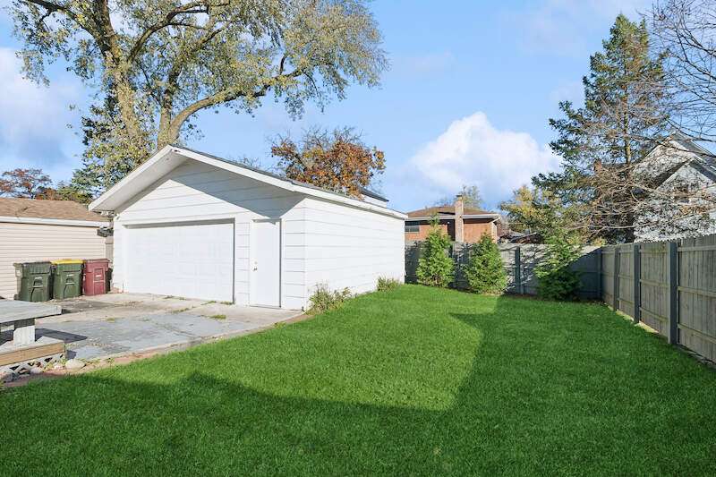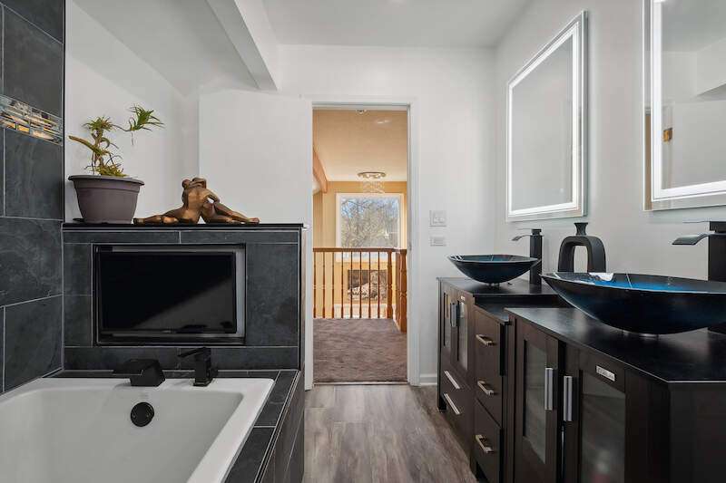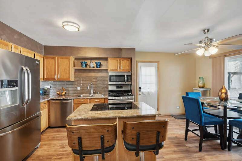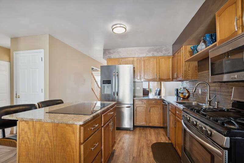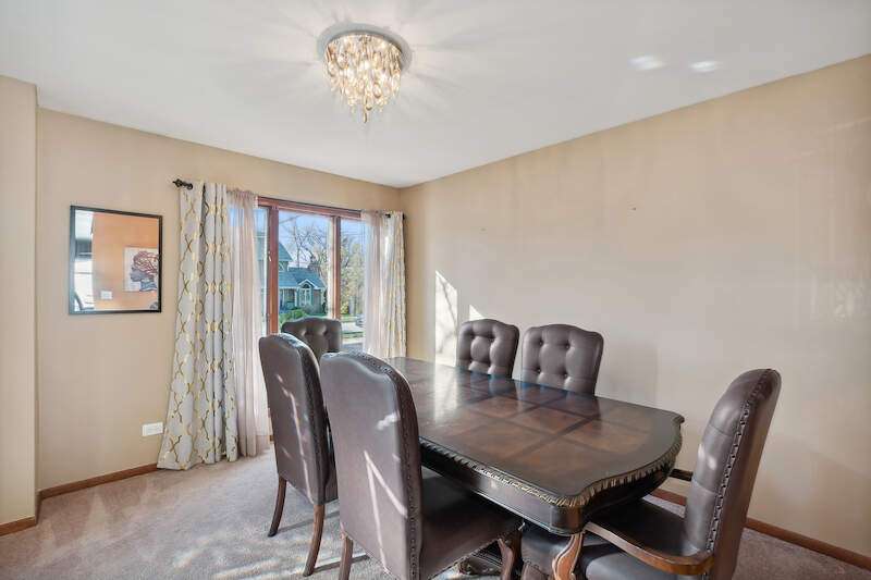 Welcome to this beautifully updated two-story home, where modern elegance meets comfort! This rarely available home is surrounded by tranquil views of nature on a quiet treeline street. Notable updates include a new furnace and A/C installed around 2017, a new tear-off roof completed in 2023, and energy-efficient solar panels. As you enter through the brand new front door (2023), you'll be greeted by a stunning two-story foyer that sets the tone for the entire home. Notice the thoughtful updates throughout, including new light fixtures, six-panel doors, stylish window treatments, and Andersen windows. The inviting living room features hardwood floors, vaulted ceilings, and new skylights that fill the space with natural light, complemented by a cozy wood-burning fireplace-perfect for relaxing evenings. The dining room offers an ideal space for gatherings, while the eat-in kitchen boasts new wood laminate floors (installed in 2023), an island with a beautiful granite counter, stainless steel appliances, a chic tile backsplash, and a sliding Andersen door that opens to the deck. The main floor primary bedroom is a true retreat, featuring vaulted ceilings, a new skylight, and double closets. The remodeled full primary bathroom is a spa-like oasis, complete with a whirlpool tub, a rainfall shower head, a new vanity, and elegant granite tile flooring. Upstairs, you'll find two generously sized bedrooms along with a beautifully remodeled hall bathroom. This luxurious bath includes a whirlpool tub, a rainfall shower head complete with a built-in TV, a double sink vanity, new flooring, a new toilet, and stylish mirrors with built-in lighting and heat, all enhanced by a new window. The full partially finished basement offers a large family room, perfect for entertaining or relaxing, and features a full bathroom installed in 2024 with a full body sprayer shower and seating. A custom steam room crafted from all cedar was also installed in 2024, providing an exceptional retreat. The washer and dryer were updated in 2019 for your convenience. Outside, you'll appreciate the professional landscaping and the newly fenced-in backyard (added in 2020), which includes attached bench seating on the deck under a charming covered pergola-ideal for outdoor entertaining. The new asphalt driveway (2022) leads to a spacious 2.5-car garage, which boasts a new roof (2023). This home is a must-see-don't miss the opportunity to make it yours!