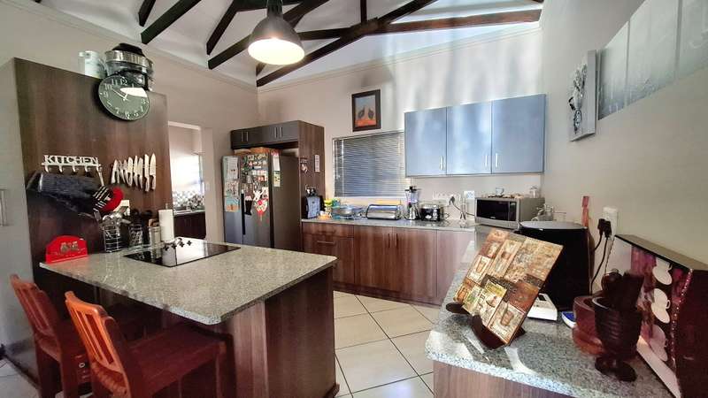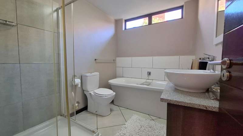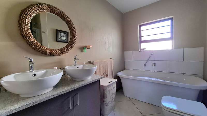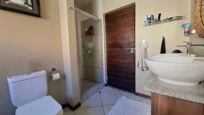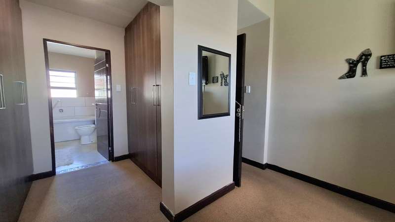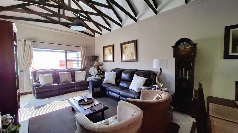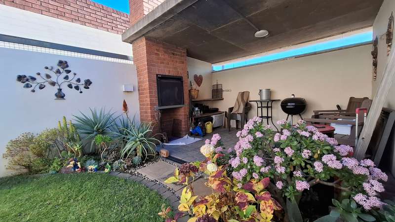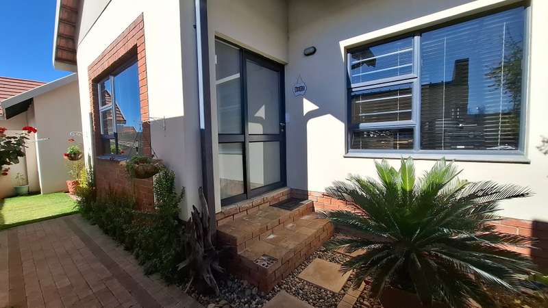 EXCLUSIVE MANDATE Discover comfortable, secure living in this beautifully designed three-bedroom townhouse, perfect for families or professionals seeking style and convenience. Step into a spacious open-plan living and dining area, enhanced by striking double-volume ceilings that create an airy, light-filled atmosphere. The modern kitchen boasts granite countertops, a hob, under-counter oven, and an eye-level oven, with a separate scullery for added practicality. The generous main bedroom offers ample cupboard space, air conditioning, and a luxurious full en-suite bathroom featuring a double vanity. Two additional bedrooms share a well-appointed full bathroom, ideal for family or guests. Enjoy outdoor entertaining in the low-maintenance garden, complete with a covered patio and built-in braai. The double automated garage adds ease and security to your everyday lifestyle. Set in a secure complex with 24-hour manned security, this townhouse offers peace of mind and comfortable, stylish living.