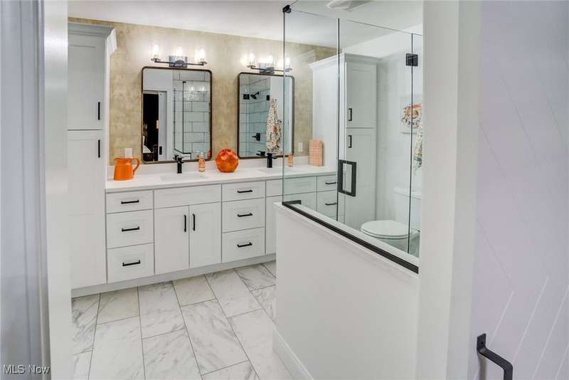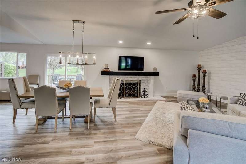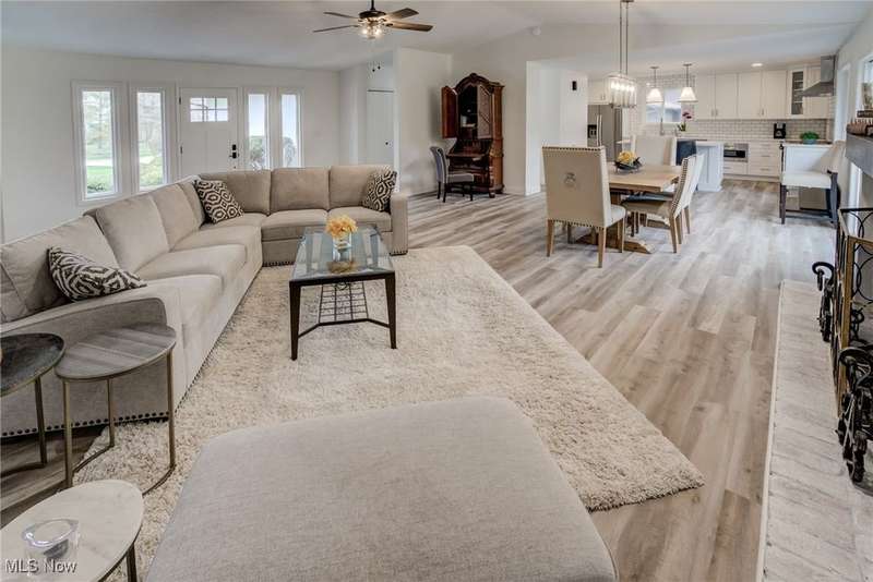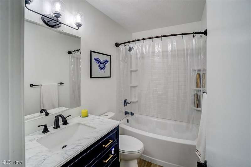 This fully furnished 3 bedroom 3 bath single family ranch homes sits on a beautiful, quiet treelined side street in Highland Heights. Luxury living at its finest. Everything is high quality and updated. The home feels large but cozy with its wide open floorplan. Gorgeous large white gourmet kitchen with quartz countertops, featuring top of the line stainless steel appliances, Refrigerator, dishwasher, microwave drawer, and range are all brand new! Washer and dryer also included in the large laundry room. The great room is very open with tall ceilings and comfy furniture for entertaining or quiet nights a home. All three of the bathrooms are completely renovated and gorgeous. The master bath features a large tile shower double sinks tons of storage and 2 large master closets! The owners bedroom is generously large with a king size bedroom set and on suite glamour bath. The 2 guest bedrooms are large and boost queen size beds. The guest full bath has an over sized tub/shower and beautiful vanity. The yard is open but the deck is nestled around beautiful trees and landscaping. This is a must see!