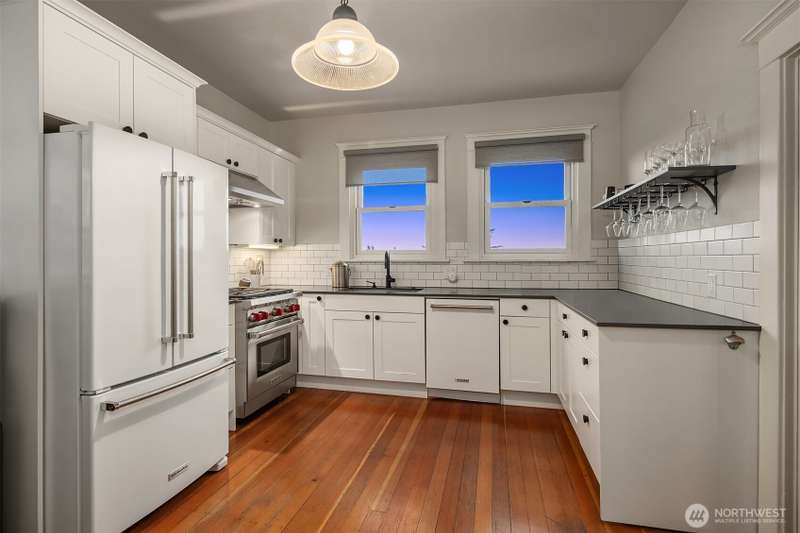 Timeless Mount Baker Charm with Sweeping Views. Perched high above the city, this beautifully reimagined 1900s residence captures 180° views of downtown Seattle, Puget Sound & Olympic Mountains. Every level of the home is designed to showcase the view. Classic details—original hardwoods and detailed millwork blend seamlessly with modern upgrades, including new windows, siding, and an expansive deck. Earlier renovations brought updates to the kitchen, bathrooms, electrical, plumbing, roof & gutters. Upstairs, find four spacious bedrooms, while the lower level offers a private guest suite. The home offers the perfect balance of urban convenience & neighborhood charm. Quick access to transit, parks, restaurants, shops, and Lake Washington.