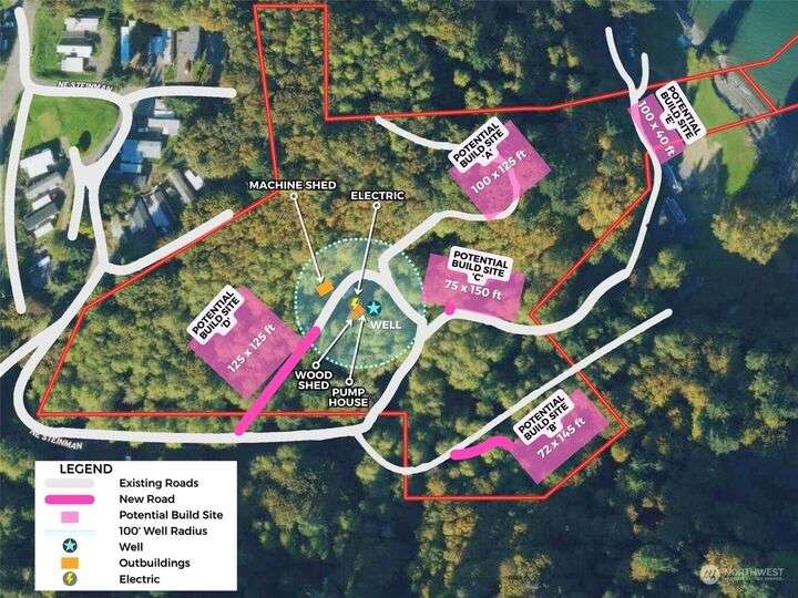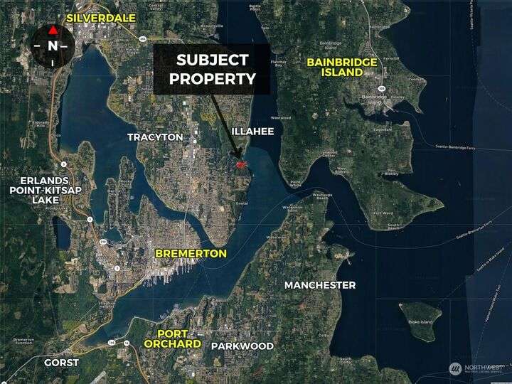 8.82-acre parcel with 84 feet of water frontage on the Puget Sound with tidelands & sweeping views of the Port Orchard Bay. Installed well, electric, shed, & outbuilding already on-site. Multiple potential building sites including one near the shoreline & others with water views. Previously approved septic design, geotech, topographic survey, site development plans, & boundary survey are available for review. Favorable zoning allows multiple homes to be built & the potential to create multiple parcels. Majority of property is generally sloped & treed, but there are multiple suitable areas for development. Road system & trails. Private setting. Borders Illahee State Park & located 4 miles from Bremerton Ferry which connects to Seattle.