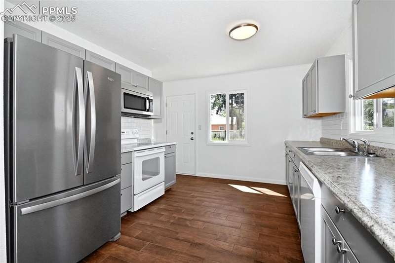 NEW FLOORING! NEW PAINT! NEW WINDOWS! Step into this fetching stucco cottage that opens to a large living room with new LVP flooring! Kitchen has been recently remodeled with tile plank flooring, subway tile backsplash and tall handsome cabinetry. Washer and dryer just off kitchen near back door with built-in cabinets above. THREE bedrooms and a renovated bath with window and luxury tile surround. Walls have original vertical inside corner moldings that meet the crown and baseboard moldings adding real character to this charmer! Near shopping, restaurants and park!