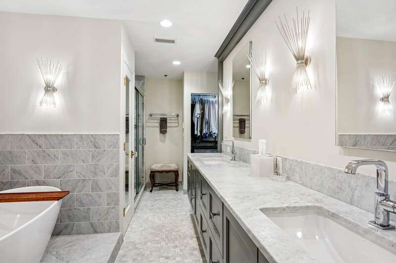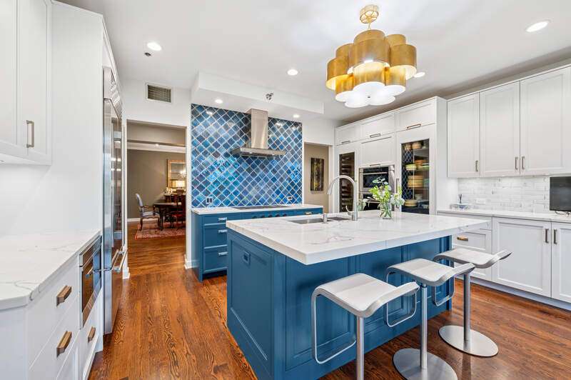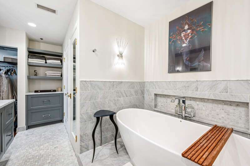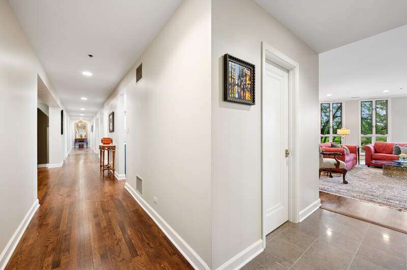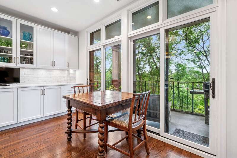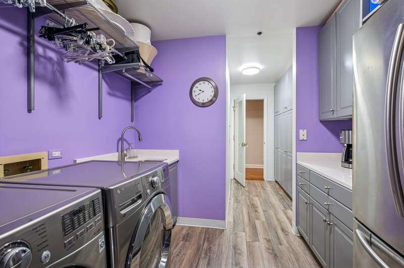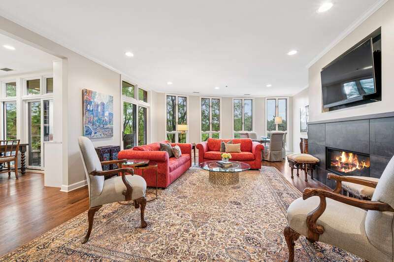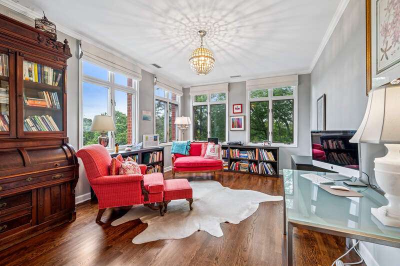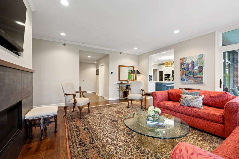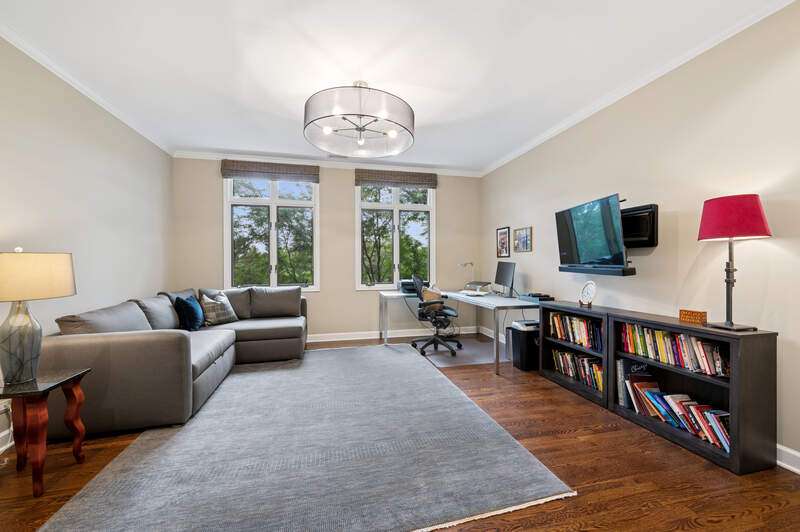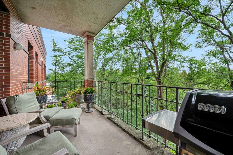 Absolutely stunning and fully renovated 3-bedroom + office, 2.5-bath top-floor condo in a prime River Forest boutique building. Nothing has been left undone-every inch of this home has been thoughtfully customized by the current owners with the highest attention to detail. You'll love the ideal flow of this spacious floor plan, featuring 9-foot ceilings, beautiful hardwood floors, and oversized windows that fill the home with natural light. The welcoming foyer includes a large walk-in closet and a stylish half bath with a custom stone vanity. The expansive living room overlooks tree tops and a peaceful courtyard, anchored by a striking custom-built fireplace and one of three sliding doors that lead to your private balcony. The true chef's kitchen is a showstopper with handcrafted cabinetry, quartz countertops, designer tile backsplash, and top-tier Sub-Zero, Wolf, and Bosch appliances. Enjoy casual dining at the eat-in island or a full table setup with two more sliding doors that open to the balcony. A flexible floor plan allows for a formal dining room or additional lounge space, while each bedroom offers excellent closet storage, custom window treatments, and designer lighting. The office can easily serve as a fourth bedroom or den. The serene primary suite offers a true retreat with fully outfitted custom walk-in closets and a luxurious spa-like bath, complete with heated floors, marble finishes, a soaking tub, large walk-in shower, and a double vanity with ample storage plus 2 linen closets! Large utility room with side by side washer/dryer, sink, additional storage! Additional highlights include heated garage tandem parking space and storage unit. All of this in a walk-to-everything location-this is River Forest living at its best. Don't miss this rare opportunity!