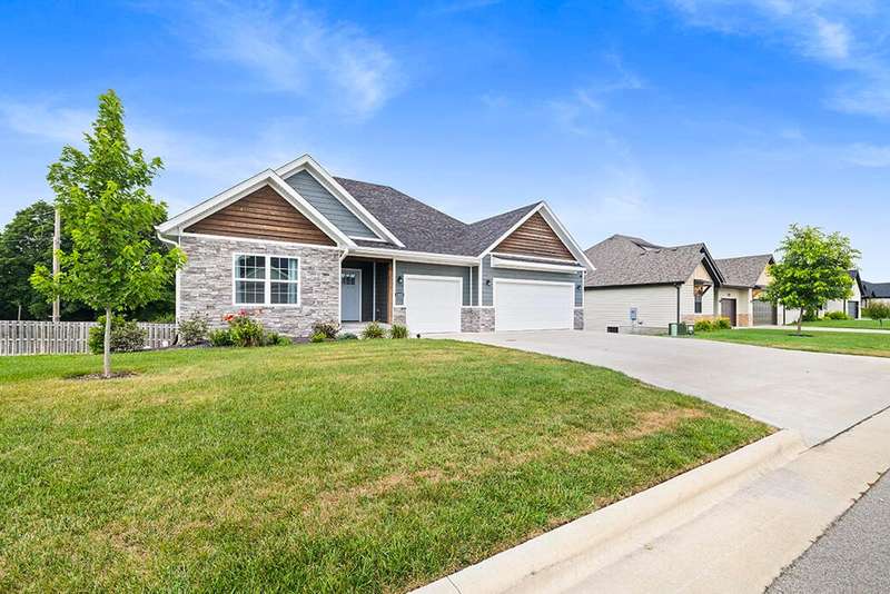 This beautifully designed 5-bedroom, 3-bathroom home offers the perfect blend of modern style and functional living. Built in 2022 and located in the highly sought-after Silo Ridge subdivision, it features quartz countertops, an open-concept layout, and a spacious primary suite with a large walk-in closet and private bath.The main level opens to a covered deck that overlooks a fully fenced backyard, creating a peaceful and private outdoor space. Downstairs, the walkout basement includes three additional bedrooms, a full bathroom, and a wet barideal for entertaining, hosting guests, or multi-generational living. A covered patio extends the living space outdoors, providing a comfortable retreat in every season.Thoughtfully designed with quality finishes throughout, this home offers both comfort and versatility in a desirable Ozark location.