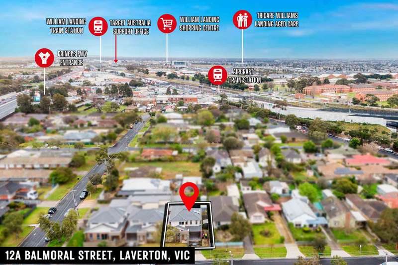 Hockingstuart Point Cook proudly presents 12A Balmoral Street, Laverton.Designed for modern comfort and effortless low-maintenance living, this contemporary home presents an outstanding opportunity for first home buyers, savvy investors, or downsizers. With its commanding street presence, an abundance of natural light, and a carefully considered floor plan, this property combines modern style with everyday functionality. Key Features: • Master bedroom with walk-in robe and ensuite • Two additional bedrooms with built-in robes • Spacious open plan living and dining area • Modern kitchen with stone benchtops & stainless-steel appliances • Chic central bathroom with modern fittings • Convenient powder room downstairs • Separate laundry with storage • Ducted heating throughout plus reverse cycle split system (living area & master) • Downlights and sleek finishes throughout • Fully landscaped gardens surrounding the home • Single garage with remote control and private driveway • Strong investment appeal with potential rental return of approx. $30,000 per annum Every detail has been thoughtfully designed to deliver the perfect balance of comfort, style, and convenience. Ideally positioned just footsteps from Laverton Station and close to shops, schools, public transport, and freeway access, this home offers both an easy lifestyle and long-term growth potential. Simply move in and enjoy. Don't miss this exceptional opportunity to secure your future – contact us today to arrange your private inspection. For more information or to schedule an inspection, please contact: • Harman Singh – 0413 395 000 • Di Zhu (??) – 0410 911 167 (Mandarin/??, English) Disclaimer: All dimensions, sizes, and layouts are approximate. The producer or agent is not liable for any errors, omissions, or misstatements. Plans and images are for illustrative purposes only. (Photo ID required at inspections)