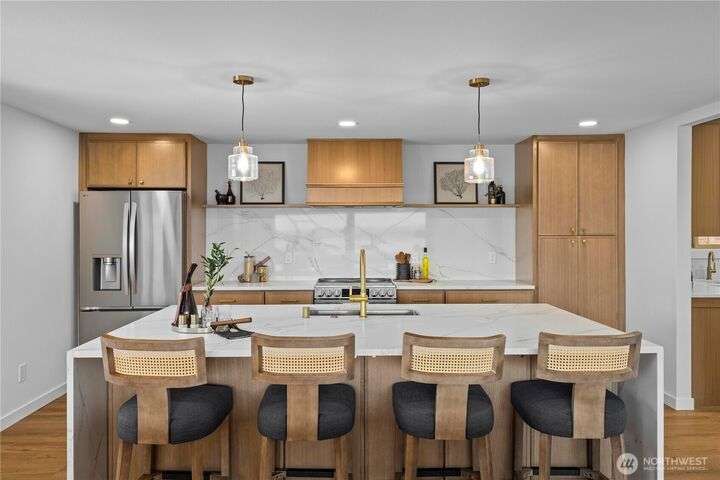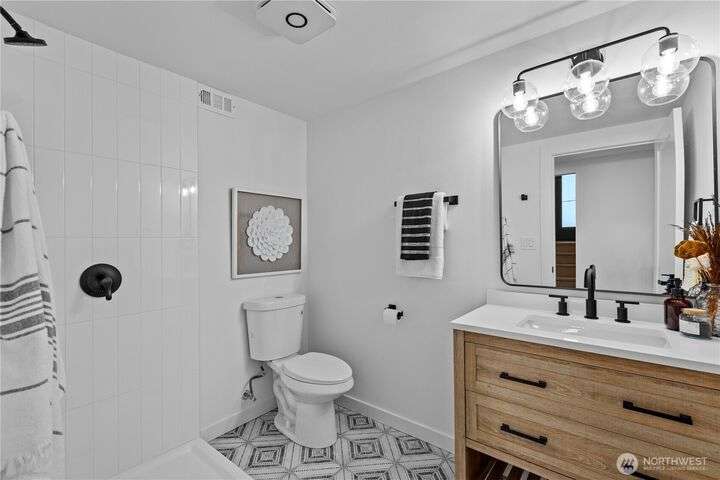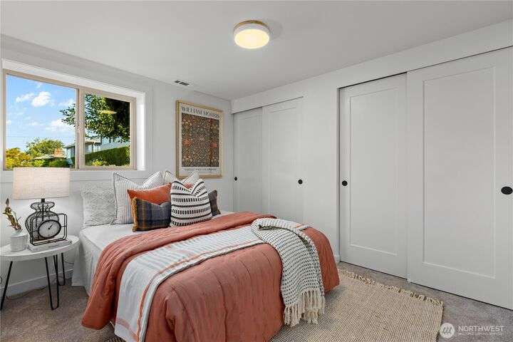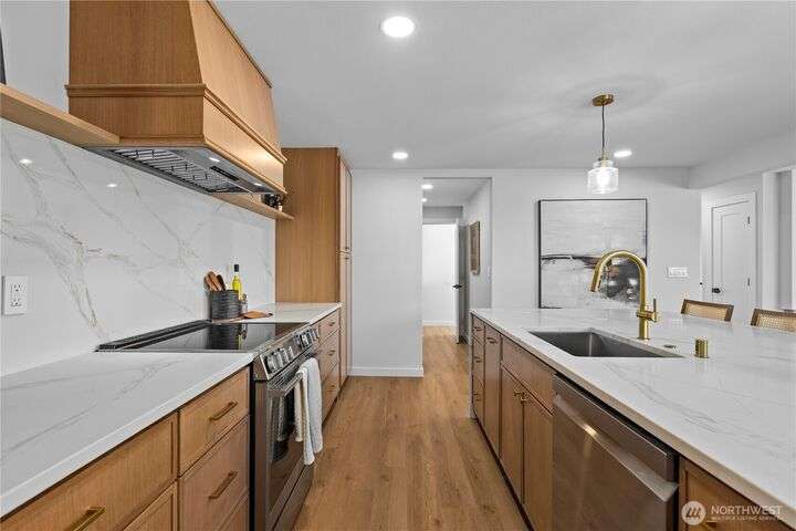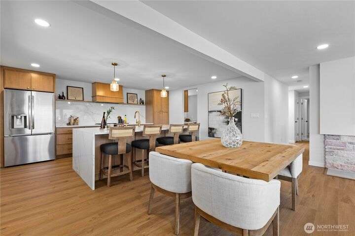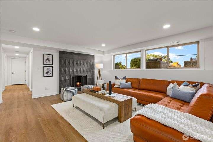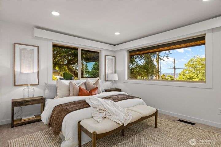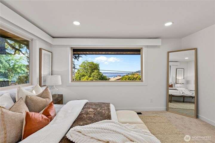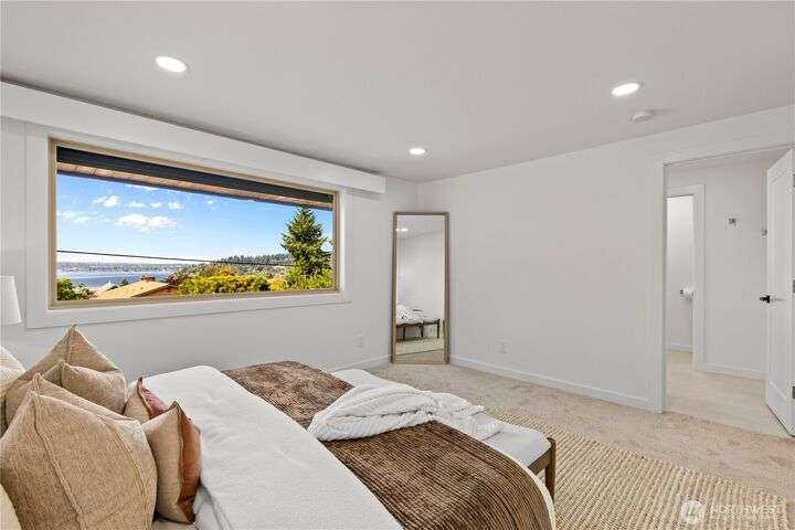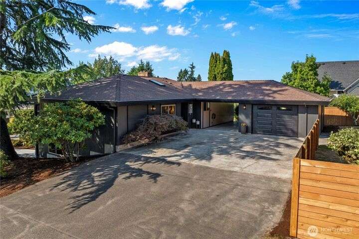 Stunning studs-out remodel in desirable Lower Kennydale! This 4 bed, 3 bath home with bonus & office lives like new. Gorgeous kitchen with waterfall island, custom cabinets, slab backsplash, walk-in pantry & beverage fridge. Great room showcases incredible views of Bellevue, Lake Washington & the Olympics. Primary suite offers spa-like bath, walk-in shower, dual sinks, views & huge walk in closet. Flexible layout offers one-level living option plus basement with oversized rec room, laundry room, office, 2 bedrooms & 3/4 bath. Two driveways, 26' deep hobby garage, oversized patio with water views & new privacy fence. Huge corner lot with DADU potential—this one truly has it all! New electrical panel, new furnace / AC, new windows, and more!