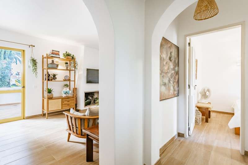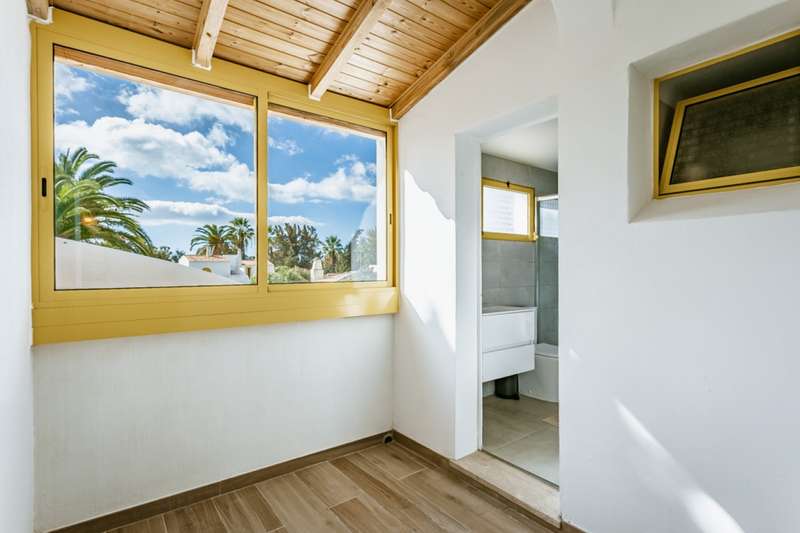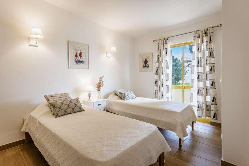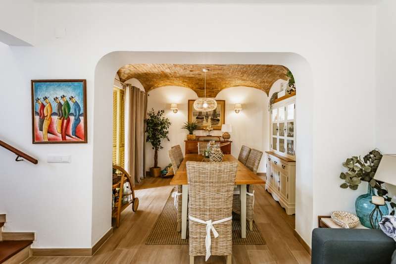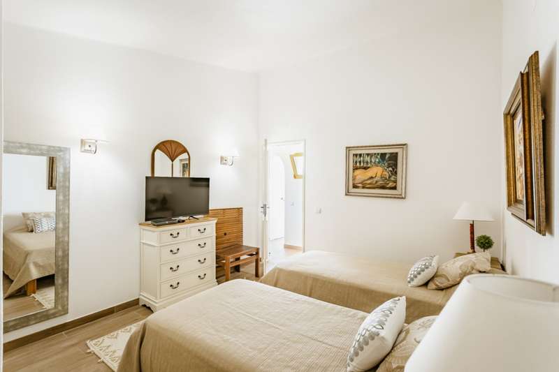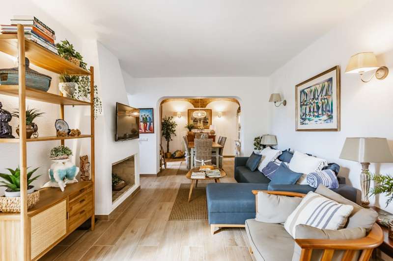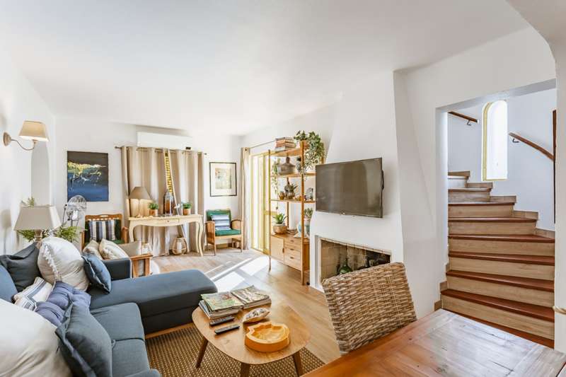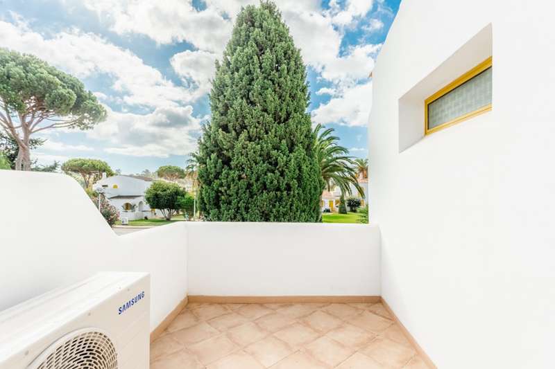 Elegant 3-bedroom villa in an exclusive private condominium in Vilamoura, with large gardens and a communal swimming pool. Located in a quiet residential urbanization, this property offers the ideal balance between comfort, privacy and proximity to the region's main attractions. Spread over two floors, the villa has a bright and spacious living area on the ground floor, comprising a cozy living room and dining room - the perfect setting for moments spent with family or friends. The fully equipped kitchen combines functionality and contemporary design, offering practical storage solutions. This floor also includes a bedroom with built-in closets and a full bathroom. The large glass doors create a fluid connection between the interior and exterior, leading to a private terrace, ideal for al fresco dining or moments of pure relaxation. On the upper floor, there are two spacious bedrooms, both with built-in closets and access to a terrace with unobstructed views of the surrounding nature - a haven of tranquillity and well-being. The condominium stands out for its carefully maintained outdoor spaces , with a lush garden and a communal swimming pool that invite you to relax and socialize. The strategic location, just a few minutes from Vilamoura Marina, the beaches, the prestigious golf courses, as well as shops and services, makes this villa the perfect combination of elegance, comfort and excellent accessibility. CHARACTERISTICS: Plot Area: 267 m2 | 2 874 sq ft Useful area: 150 m2 | 1 615 sq ft Deployment Area: 149 m2 | 1 604 sq ft Building Area: 170 m2 | 1 830 sq ft Bedrooms: 3 Bathrooms: 3 Energy efficiency: E FEATURES: 3-bedroom villa Fitted kitchen Private condominium Swimming pool and communal gardens 2 floors Private terraces Villa in Vilamoura