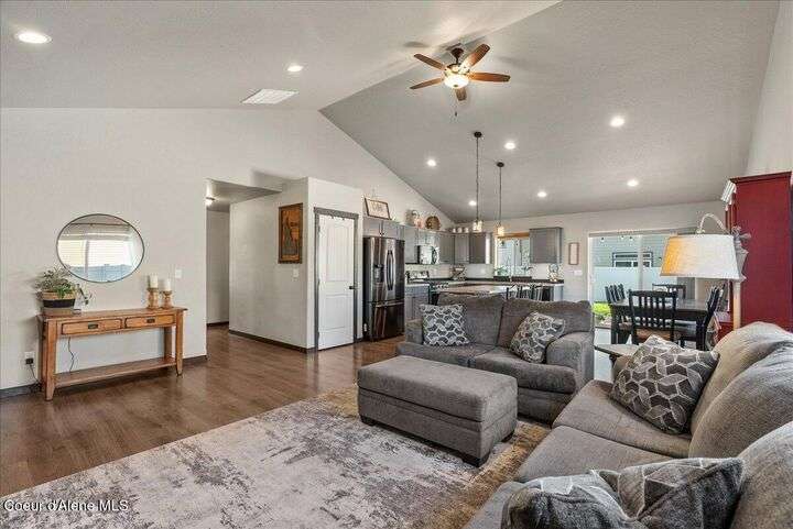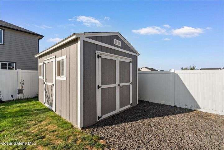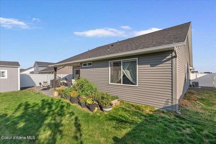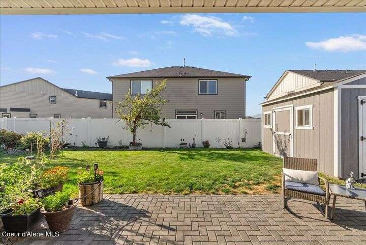 Like-new single-level home in Brookshire, built in 2020 and featuring the desirable Rockford Bay floor plan. This spacious layout offers 4 bedrooms and 3 bathrooms, perfectly blending comfort and functionality. Why wait for new construction when this move-in ready home is available now? The property is fully landscaped with fruit trees, front-yard sprinklers, includes a 10x14 storage shed, and boasts both a covered front porch and a covered back patio for year-round outdoor enjoyment. Conveniently located just minutes from Coeur d'Alene, shopping, and schools—this home has it all!