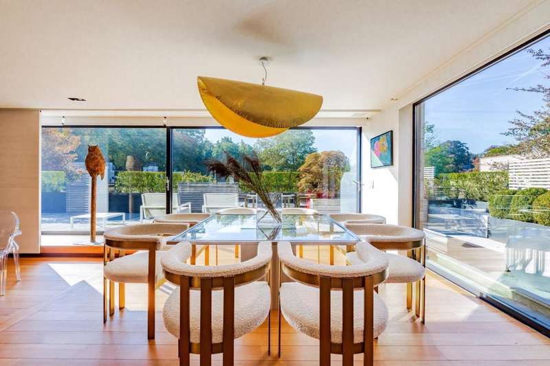 In the Prince d'Orange district, in the heart of a green park with age-old trees, exceptional renovated penthouse, +/- 271 m², with +/- 225 m² terrace, condominium park and outdoor swimming pool. Attractive 3-part reception room, very nice open-plan kitchen, 2/3 bedrooms including a vast master suite of +/-60 m², 3 bathrooms. 2 cellars. Garage for 2 cars. EPC F
