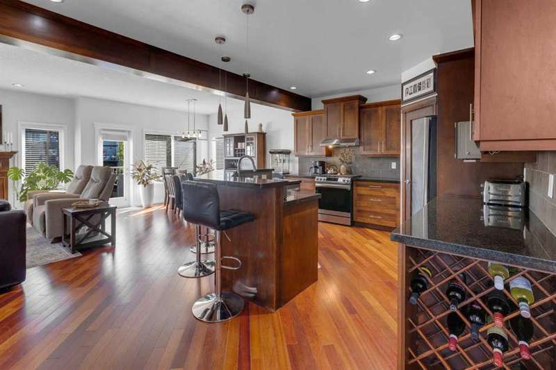 ** OPEN HOUSE ** Sunday October 19th 2pm-4pm ** Step into luxury living with this exceptional corner-lot residence in the highly desirable community of The Cove in Chestermere! Perfectly positioned just steps from the beach, pickleball courts, and parks, this home offers not only a beautiful place to live, but a lifestyle to match. Thoughtfully designed, the main floor welcomes you with rich hardwood flooring, a grand foyer that sets the tone, and an open-concept layout ideal for family gatherings and entertaining alike. The kitchen is a true showpiece, complete with a gas stove, an oversized island, and seamless flow into the dining and living areas. A private office, a convenient half bath, and a laundry/mudroom with garage access add both style and function. Upstairs, four generously sized bedrooms provide comfort for the whole family, complemented by a cozy bonus room and a 5-piece bath. The primary suite is a serene retreat with its own 4-piece ensuite, perfect for unwinding after a long day. Outdoor living is second to none here—relax on the elevated deck, or step down to the beautifully landscaped backyard. The undeveloped walkout basement offers endless potential to design a dream recreation space, gym, or guest suite, all with seamless access to the outdoors. Modern comforts have not been overlooked: enjoy cool summers with central air conditioning and warm, cozy winters with a heated triple car garage. Conveniently located close to schools, shopping, and major roadways, this property offers the perfect blend of comfort, convenience, and community. With its unbeatable location, elegant design, and incredible future potential, this home is a rare find you won’t want to miss!