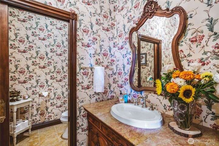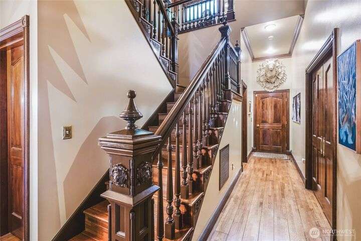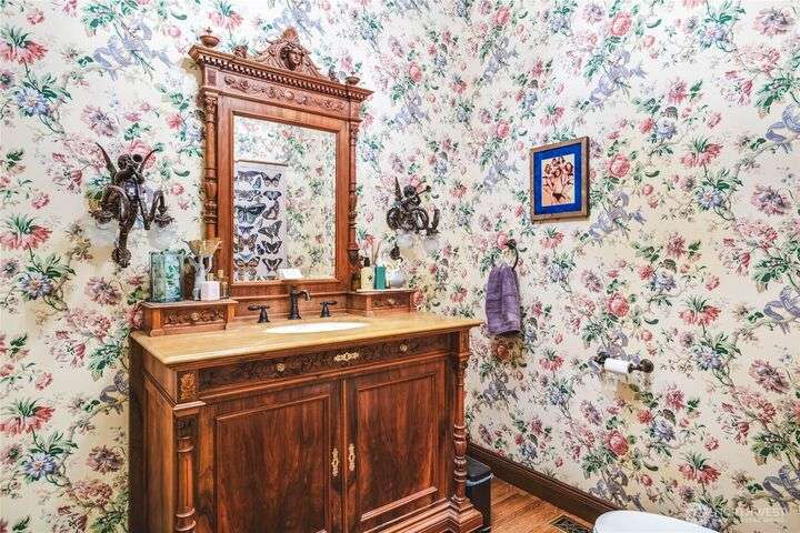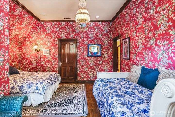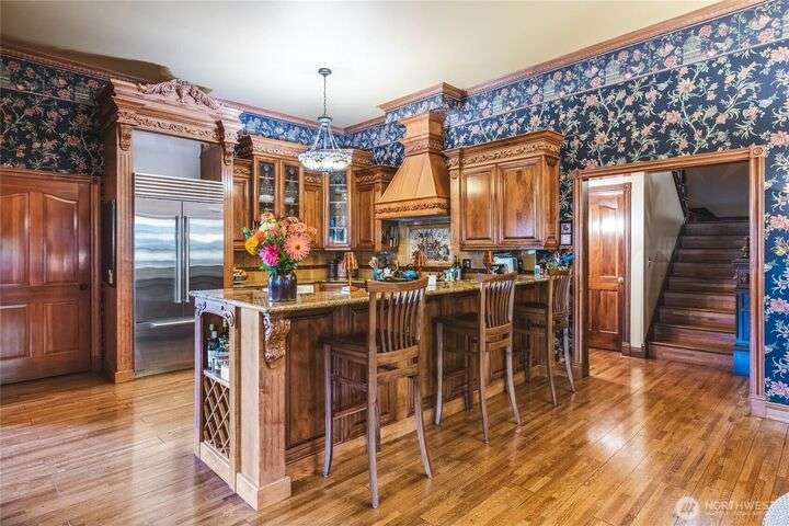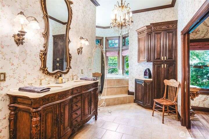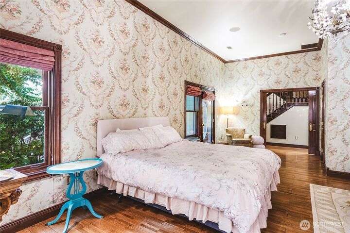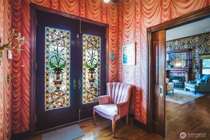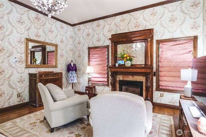 STUNNING VICTORIAN STYLE home with expansive views of Turtleback Mountain to British Columbia. Enjoy 7.5 private acres with ponds,waterfalls,gazebos,greenhouse, and walking paths, all in a serene mountain setting. Experience the property’s old growth trees, endless wildflowers in the Spring & Summer, and easy access to Moran State Park. This charming home features antique light fixtures, hand-painted wall paper, stained glass doors and 1800’s mantels, as well as modern updates like HVAC, solar panels, full irrigation, Wolf and Sub-Z appliances. Walled gardens, covered porches, and a fire pit perfect for outdoor living in the summer, while a Vermont Castings wood stove keeps winter cozy! Minutes from Eastsound amenities yet a world away.