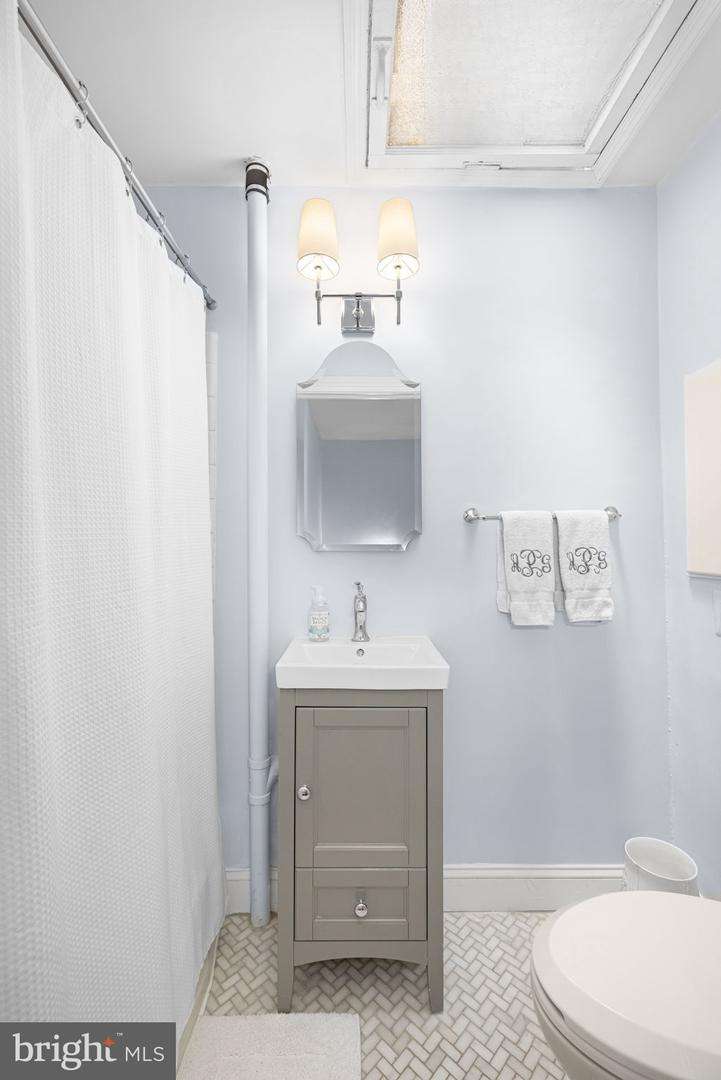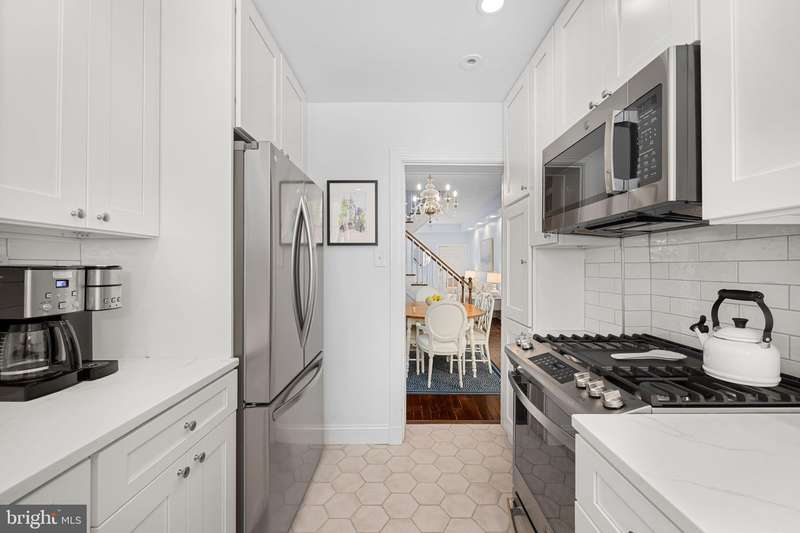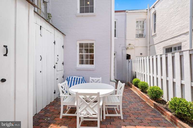 Tucked away on one of Georgetowns most picturesque and historic cobblestone streets, this enchanting two-bedroom, two-bathroom residence seamlessly blends timeless charm with thoughtful, modern updates. With southern exposure, original hardwood floors, and beautifully curated designer interiors, every detail of this home has been carefully considered.The inviting front living room features soaring ceilings and a classic wood-burning fireplace, creating a warm and welcoming atmosphere. Beyond, the formal dining room offers expansive custom built-in cabinetry and a cleverly designed Harry Potter closet tucked beneath the stairs. The renovated kitchen boasts white quartz countertops, all-new stainless steel appliances, and a clean, elegant aesthetic that perfectly complements the homes character.Upstairs, the sunlit primary suite features dual California Closets, while the second bedroom also includes a custom California Closet and Lutron electric shades for modern convenience. The hall bathroom shines with natural light from a skylight and has been updated with marble, new fixtures, and a modern vanity. The en suite bathroom features a timeless marble vanity and a high-capacity, top-of-the-line stackable washer and dryer.Significant system upgrades include a brand-new combination boiler and tankless hot water heater, full PVC re-plumbing, and a dual climate setup with central A/C, radiant heat, and Nest smart thermostats for year-round comfort.Outdoors, a private brick patio with professional landscape lighting and an outdoor TV console offers the perfect backdrop for relaxed evenings or weekend entertaining. A rare private breezeway from the sidewalk provides direct rear access to the patioideal for discreet trash bin storage or convenient entry, a highly coveted feature in Georgetown.Freshly painted inside and out, this move-in ready Georgetown gem is ideally located just steps from neighborhood shops, acclaimed restaurants, and only two blocks from Georgetown Universitymaking it a rare find in one of DCs most iconic neighborhoods.