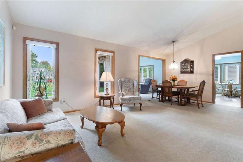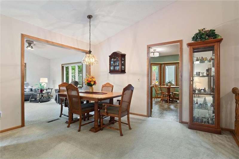Quality built one-level, lovingly cared for by original owner. Popular Eagan community; close to parks, schools, trails and fabulous shopping and dining amenities. Easy commuting access to both downtown areas. Enjoy lovely landscape views from spacious patio with convenient sun cover. Three bedrooms on one level with 4th, large lower level bedroom. Private primary suite with 3/4 bath and walk-in closet. Fabulous vaulted family surrounded by private yard. Bright, spacious eat-in kitchen with pantry, mudroom and natural woodwork. Recently updated mechanicals and appliances. New roof in 2020. Ready to make your home! !