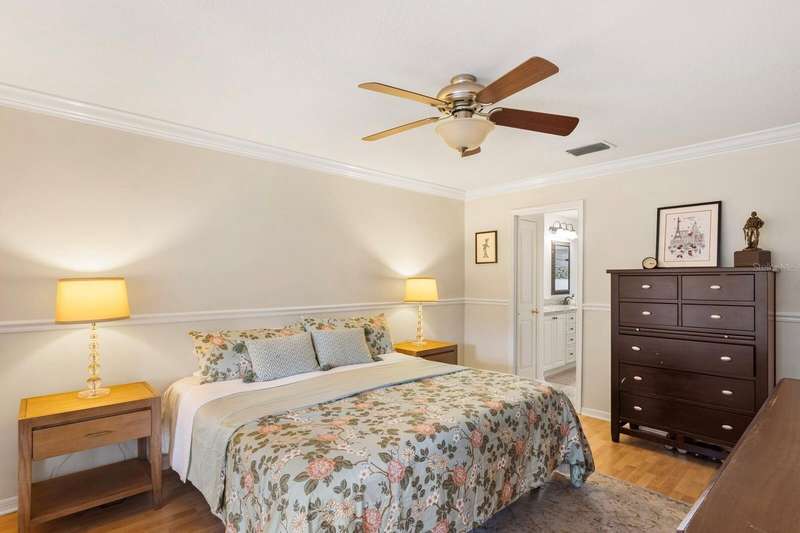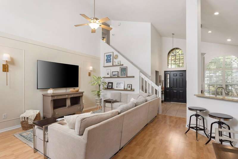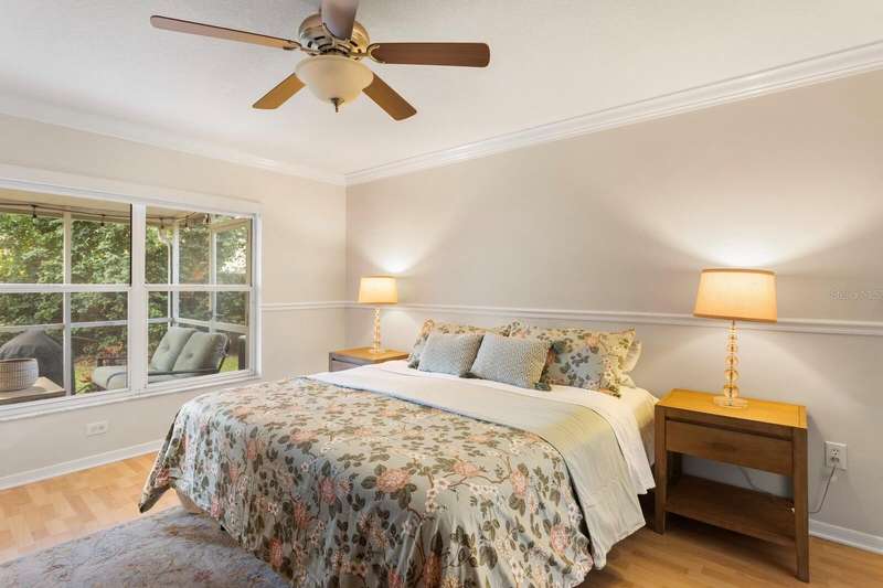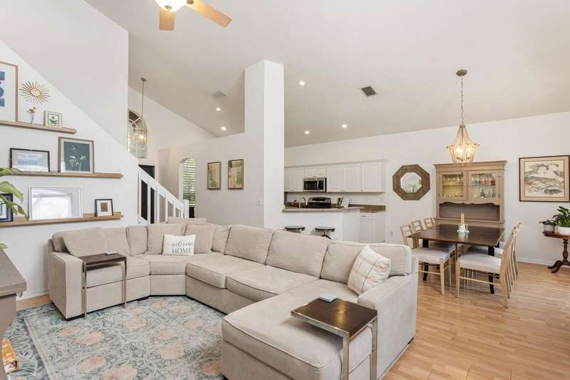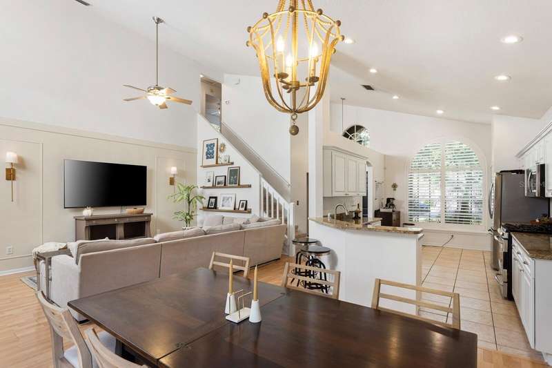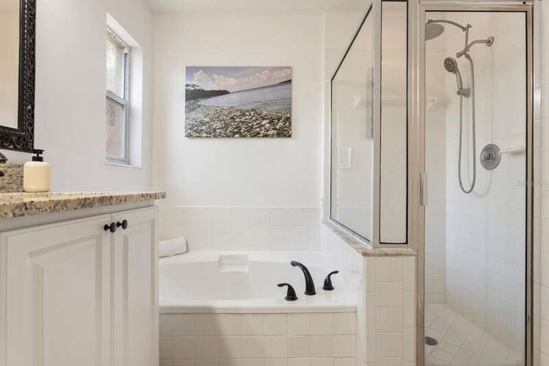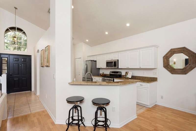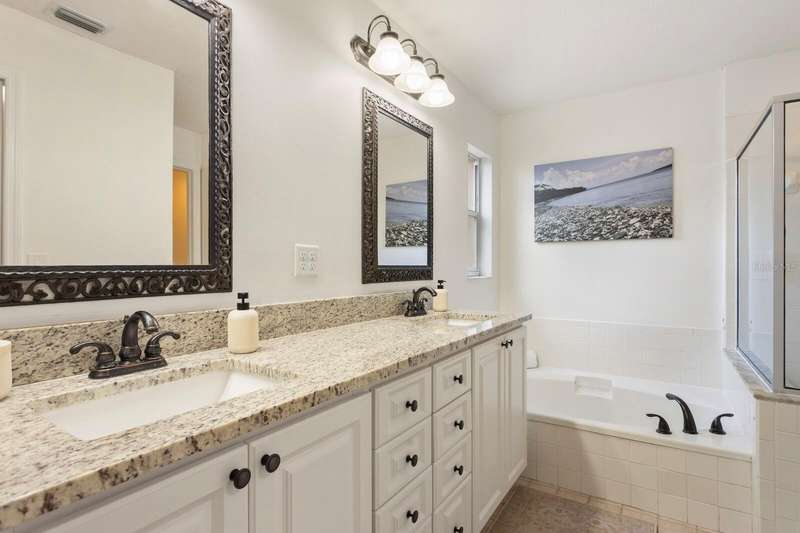 Nestled in the picturesque community of Westchase, this beautifully maintained two-story, 4-bedroom, 2.5-bath, 2-car garage home offers the perfect blend of comfort, style, and functionality. The impressive two-story foyer and living areas welcome you in, showcasing tasteful updates, decorative finishes, laminate wood flooring, and fresh interior paint that enhance the home’s bright and airy feel. The eat-in kitchen features timeless white cabinetry, granite countertops, a breakfast bar, plantation shutters, tile flooring, a double sink, closet pantry, and stainless steel appliances—including a gas range—perfect for everyday cooking or entertaining family and friends. The kitchen opens to the dining and family rooms, creating an open-concept flow ideal for modern living. Sliding glass doors from the dining room lead to the back patio, offering seamless indoor-outdoor living. The family room is equally inviting with remote-controlled electric blinds, and an accent wall with decorative wall molding—a stylish touch that adds character and warmth to the space. The first-floor primary suite offers a peaceful retreat complete with a large walk-in closet featuring an organizer system and an updated en-suite bath with granite counters, white cabinetry, designer mirrors and fixtures, a relaxing garden tub, and a separate shower. A beautifully updated powder room with granite counters and beadboard accents, along with a convenient mud/storage area, complete the main level. Upstairs, three additional well-appointed bedrooms provide plenty of space for family, guests, or a dedicated home office. One bedroom features a charming window seat—perfect for a reading nook—and the updated guest bath boasts a subway tile tub/shower combo and granite countertops. Step outside to a spacious covered and screened patio overlooking the private, fenced-in backyard—ideal for morning coffee, dining al fresco, or simply enjoying the outdoors. Additional updates include new interior paint (2025 & 2022), a new water heater and refrigerator (2023), new carpet (2021), and new roof and exterior paint (2017). Located in one of Tampa Bay’s most desirable communities, this home offers not just a place to live, but a lifestyle. Residents enjoy Westchase’s incredible amenities, including two community pools, a toddler pool, lighted tennis and pickleball courts, playgrounds, a splash park, outdoor ping pong tables, exercise stations, basketball courts, picnic pavilions, and scenic nature trails. With top-rated schools and close proximity to shopping, dining, Tampa International Airport, downtown Tampa, the Riverwalk, and world-famous Gulf beaches—this is the one you’ve been waiting for!