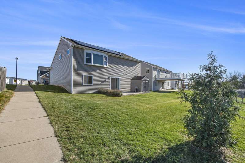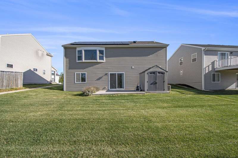 This 3 bedroom, 2 bath newer bi-level home in Bretonfield Preserve is ready for the new owners with immediate occupancy. Excellent location, close to shopping and schools. Enjoy walking trails that travel across 32 acres of open space and connect to the Paul Henry Trail. New laminate flooring in kitchen, dining area and living room. Energy efficient solar panels to help keep the electric bills lower. Relax in the whirlpool tub in the lower level bathroom. Underground sprinkling and shed.