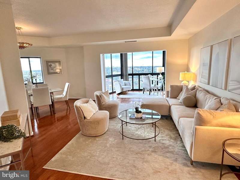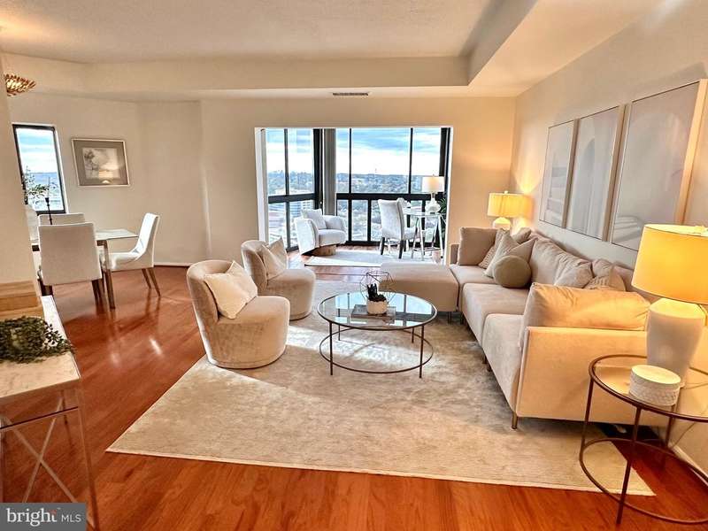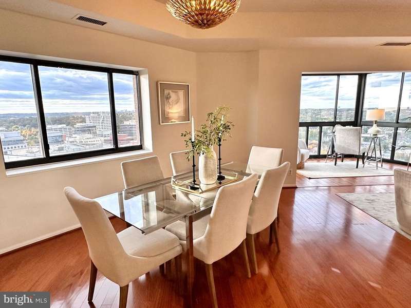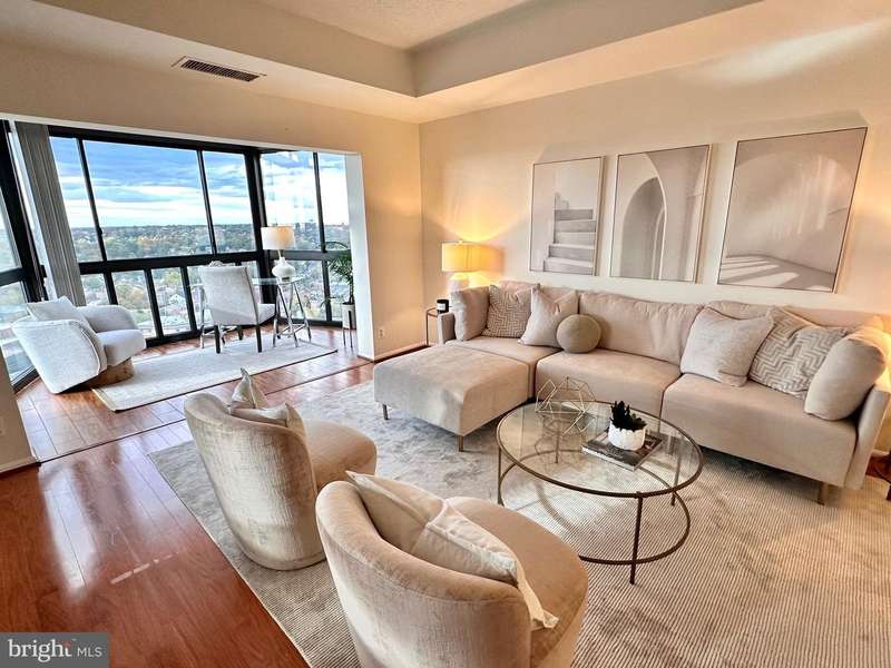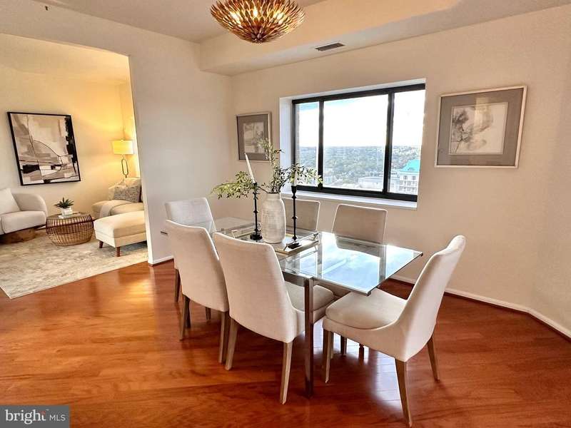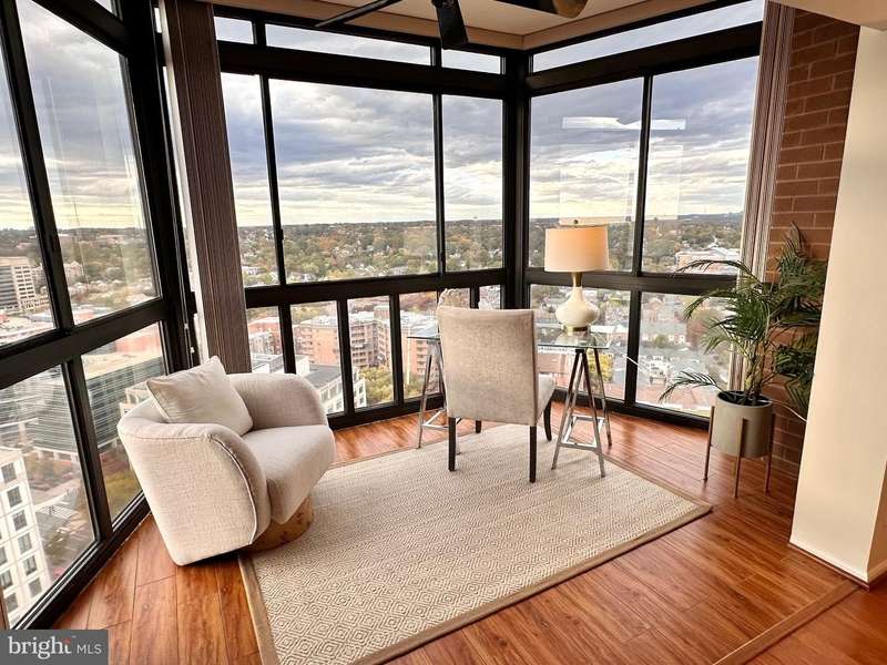 Penthouse 2BR/3.5BA 1,774 Sq Ft Ballston Condo w/ Breathtaking Views! Sunny & open living/dining areas w/ adjoining den/office. Direct access to sunroom w/ floor to ceiling glass & views as far as the eye can see. Rare primary suite w/ 2 full ba's & tons of closet space. Upgraded Kitchen w/ sleek cabinetry, granite, ample storage & prep space. Hardwood floors throughout. Garage parking. Bonus oversized external storage area on 8th flr. Secure building w/ 24/7 concierge/package acceptance, fitness center & party rm. Direct inside access to Metro entrance, Starbucks, shopping! $55 per adult applicant. Application on L&F website. OWC 1 small pet w/ deposit. Immediate Occupancy!