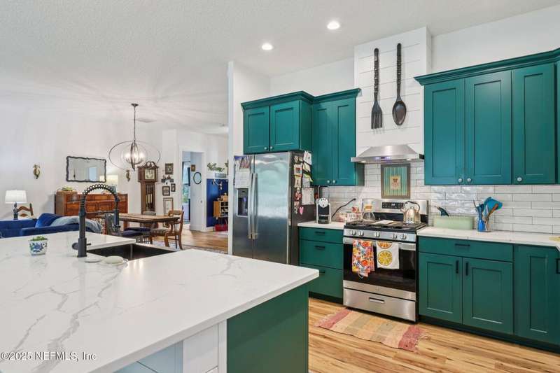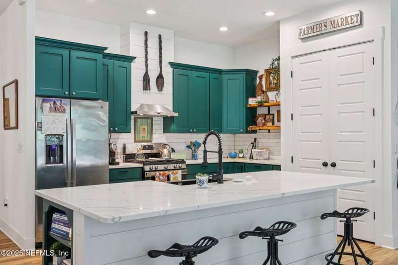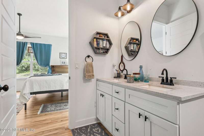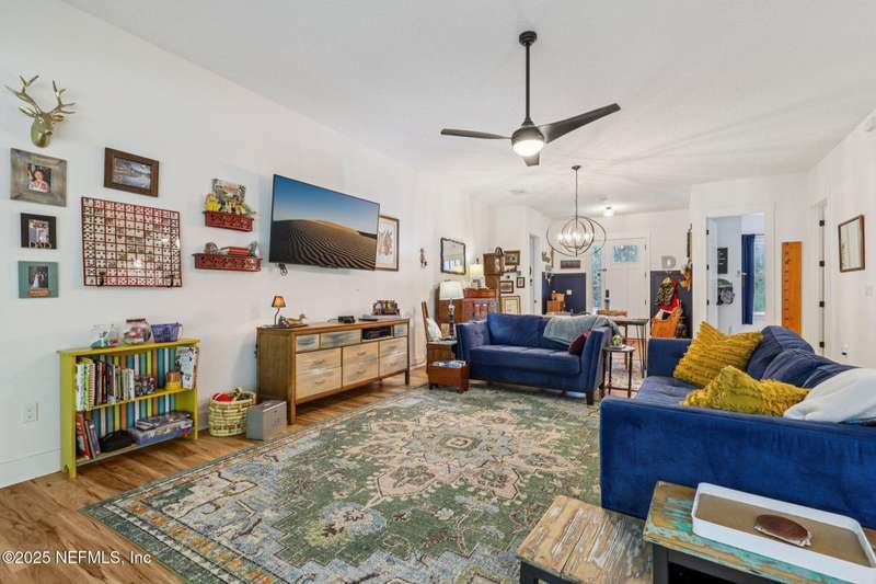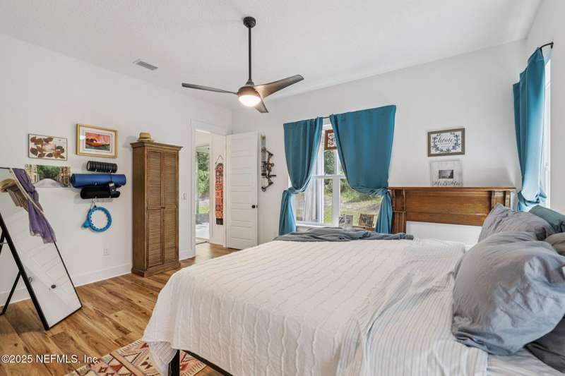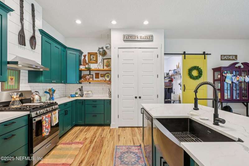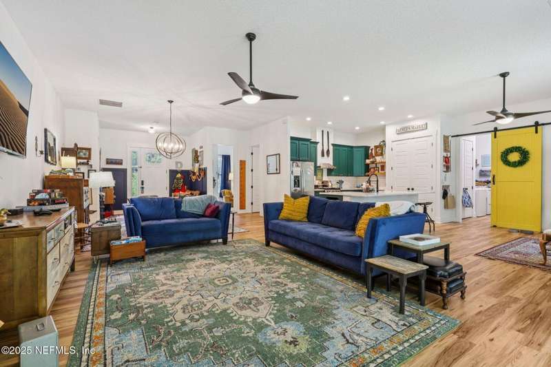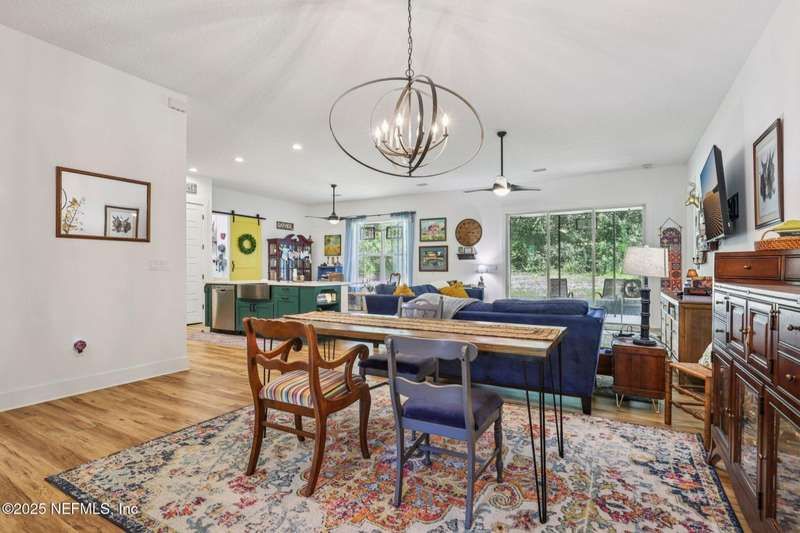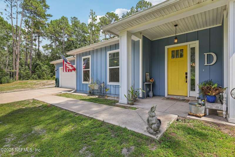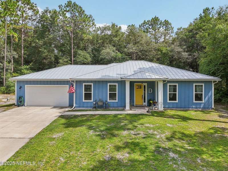 Discover this beautiful, nearly new custom home, where modern design meets comfort and functionality. Built just a few years ago, this home features a thoughtfully designed split-bedroom layout that offers both openness & privacy, along with 2X6 construction, which also allows for better insulation. Stylish barn-style doors and durable, attractive flooring add to the home's contemporary charm, as well as the country style metal roof.Each spacious bedroom provides a cozy, private retreat, while the expansive yard offers plenty of room for outdoor enjoyment. Hobbyists and adventurers alike will appreciate the easily accessible RV/workshop space. Additional highlights include a large utility room, convenient half bath, & an outdoor utility area with shower perfect for cleanup after work or play.Enjoy the benefits of custom-quality living without the wait, tucked away from the hustle & bustle. Don't miss this unique opportunity! Owner has a fully transferrable termite bond.
