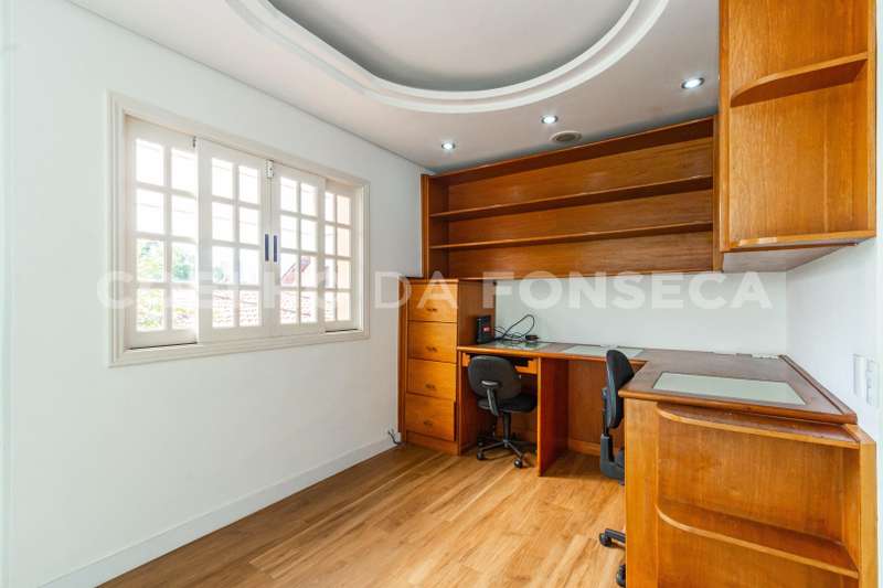 Ótimo e agradável sobrado de esquina, com arquitetura contemporânea e construção sólida. Ambientes espaçosos e integrados. Amplas janelas, que proporcionam ventilação natural e muita claridade. Living para vários ambientes, com lareira, piso em tábuas largas e acesso a excelente área externa com piscina, sauna, academia, churrasqueira e forno de pizza. Suíte master com dois closets e sala de banho com hidromassagem e pia dupla. Rua tranquila e arborizada, com guarita.