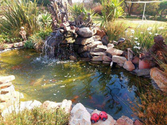 Located in a small quiet town, but near business. Welcome to this exquisite family home, perfectly blending comfort, style and security. Nestled in a tranquil garden, The home offers a beautiful kitchen with gas stove and double electric ovens. Separate scullery and a lot of cupboards space. The dining room makes for many happy family time. The spacious lounge overlook the beautiful garden with a koi pond and lovely trees. The house comes with 3 large bedrooms and 2 bathrooms also a separate toilet. Extra's Jo Jo tanks. Very strong borehole 3 garages and carports. The house also comes with CCTV and Solar panels. The property walled with palisades and motorized gates. pre paid electricity the old family home is still on the property, and is in use by staff. This is a very good property, if you are looking for a home near to everything, but in a quiet area.