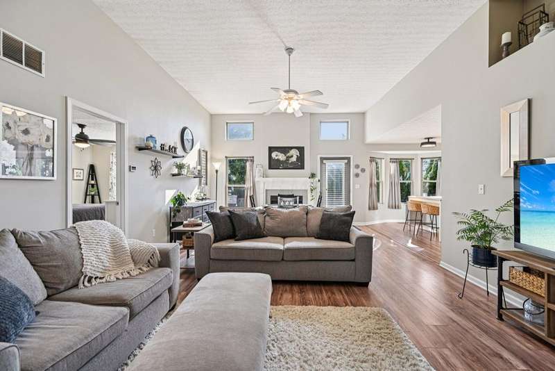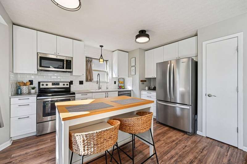 Welcome to this impeccably maintained ranch-style home in desirable Hilliard Green offering an inviting open floor plan, modern updates, a brand new roof, and a private, fenced rear yard retreat. Step inside to find a light-filled great room with soaring ceilings, a cozy fireplace, and large windows that fill the space with natural light. The adjoining dining area flows seamlessly into the updated kitchen, featuring stainless steel appliances, white cabinetry, subway tile backsplash, and ample counter space. Multiple sightlines create an easy flow for everyday living and entertaining.The home offers three comfortable bedrooms, including a spacious primary suite with large windows, an en suite bath, and a walk-in closet with built-in storage. The additional bedrooms provide flexibility for guests or a home office. A second full bath has been tastefully updated with modern finishes.The lower level includes a laundry area, mechanicals, and plenty of space for storage, fitness, or hobbies. Outside, enjoy a private fenced yard with mature trees, raised garden beds, and an expansive paver patio?ideal for outdoor dining, relaxing, or hosting gatherings. Hilliard Green Community Park is only a one minute bike ride away, or a five minute walk! With neutral finishes, stylish updates, and move-in ready condition, this home combines comfort and function.