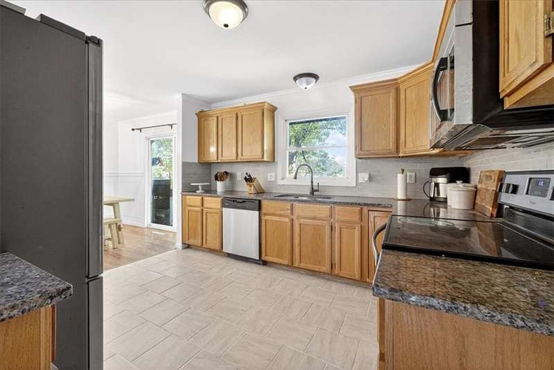 Stratford Estates beauty ready for its new owner* Don't miss this big side-by-side split on this great private lot* So many updates in this 2 1/2 bath house* Largest bedroom has its own full bathroom and two closets* hall bathroom is large* several living areas including the large area with the 1/2 bath, off the garage *bonus room in lowest level can be a non-conforming bedroom or office*fenced in yard gives great privacy and would be great for your pups* kitchen has nice updates including beautiful granite and backsplash and it has a wonderful dining area* lots of wood flooring throughout and some nice tile flooring* the large deck off the kitchen great space for getting that fresh air and relaxing*