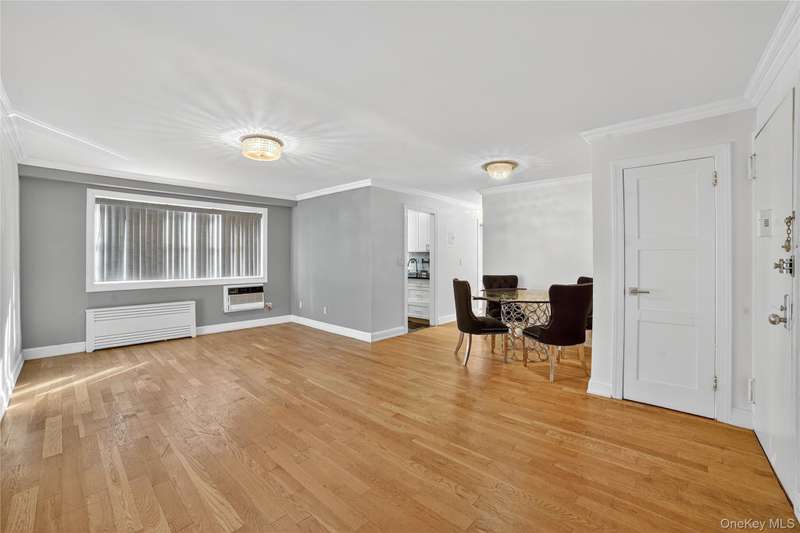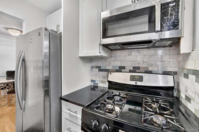 Welcome Home to the Secor Terrace building at 1122 Yonkers Ave in Yonkers, this Contemporary Designer bright one bedroom co-op with a great location to NYC and all towns in Westchester. Modern Spacious Galley Kitchen completely updated with granite countertops, stainless appliances, white cabinetry with satin nickel pulls, a contemporary fully tiled backsplash sure to be to your liking! The bathroom is also updated with white and current colored tiles with a contemporary pattern, siding glass doors complete the shower/tub combination. A Large Bright living room big enough to fit couches, tables TV cabinet and even a desk if you are in a work from home situation. A nice size dining area can fit a table for six. Rich hardwood styled floors, newly painted walls with the latest decorator colors. Crown and floor molding and the most Current lighting fixtures and features in every room. So much closet space in the co-op and in the bedroom. All closet doors and hardware are of the most current styles. This is an elevator building with a spacious welcoming lobby so meticulously maintained. Live in Superintendent in the building. Parking garage and Laundry room in the building. Low monthly maintenance fee. There is a bike rack at the exterior of the building. A commuters dream into NYC it is a quick two block walk to Metro North, with a 20 minute commute to Grand Central Station....So many nearby major roads, parkways easily get to all Bronx areas and Westchester towns via car or bus. Cross County shopping center is minutes away, and the wonderful and new Ridge Hill shopping area is nearby as is Stew Leonard's and downtown Yonkers and Central Ave for all your shopping needs. The downtown Yonkers area and Ridge Hill for all your dining and entertainment. This co-op comes with 1 indoor garage parking spot. Heat and Hot water and Gas included in monthly maintenance fee. $40/month special assessment fee in addition to monthly maintenance $542