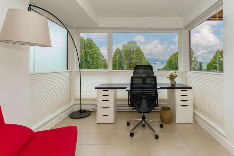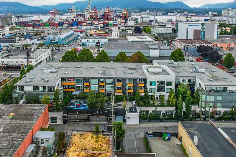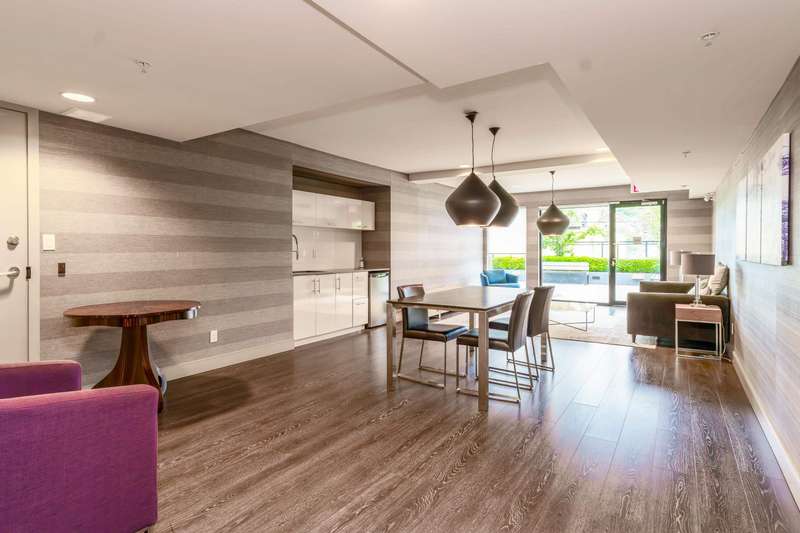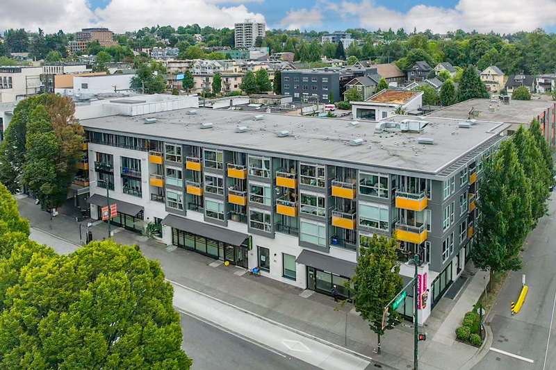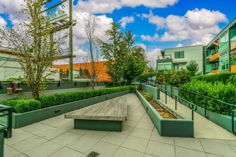 One BEDROOM w/W.I. Closet, a large DEN (easily a 2nd bedroom), a FLEX SPACE & a secure STORAGE LOCKER. Versatile open floor plan with mountain view. Quality high-end appliances, gas range, quartz counters to sit at, a spacious bathroom & cozy living room. New up & down blinds. Covered balcony, 1 parking stall w/bike rack. Resident's lounge, kitchen, a gym, child's play area & roof top garden. Pets:1 dog(any size) & 1 cat OR 2 cats. Transit at your doorstep, less than 10 minutes to downtown or 4 blocks from Adanac Bike Route. Close to shopping, restaurants, parks, BOHEME - convenient, modern, affordable - turn key condition!