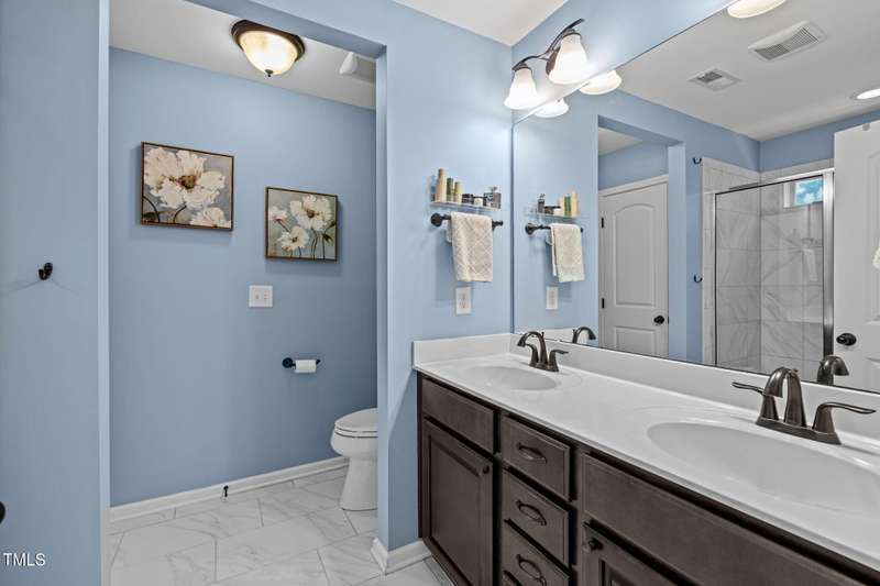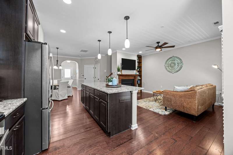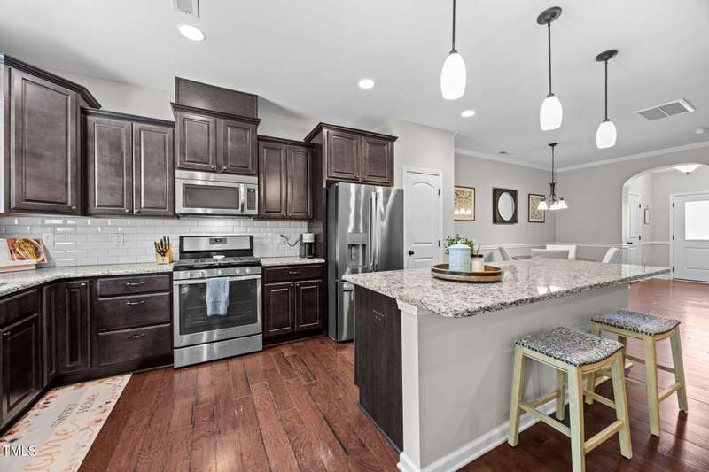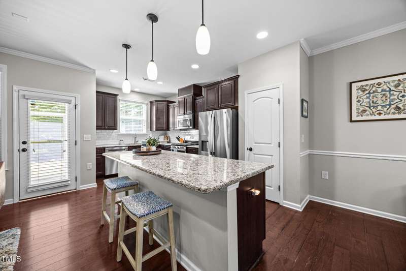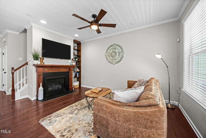 Welcome to this beautifully maintained and spacious townhome located in a highly desirable Cary community. As you enter, you're greeted by a welcoming foyer that leads into an open-concept main living area. Hardwoods grace the main level. The kitchen offers ample cabinet space, granite countertops, tile backsplash, pantry, stainless steel appliances, and a gas range. The oversized kitchen island is perfect for meal prep or entertaining! The kitchen overlooks a cozy living room with a gas fireplace and built in bookshelves. The second floor features two generously sized bedrooms, each with its own private ensuite bath and walk-in closet, making them ideal as dual primary suites. The large laundry room is located on second floor with extra cabinet storage space above washer/dryer. The third floor features a private third bedroom, complete with a full bathroom and a walk-in closet. This flexible space can easily serve as a bonus room, home office, exercise area, or guest suite. Three zone HVAC. Don't miss all the incredible storage this home has to offer... including walk-in closets, walk-in attic space, a garage, and extra storage tucked beneath the first-floor staircase. The expansive driveway (one of the longest in the neighborhood) offers parking for two cars in addition to a garage space. Enjoy the screened-in porch overlooking a tree-lined backyard offering privacy. Just beyond the trees, you'll find the greenway trail for easy access to nature and outdoor activities right from your doorstep. This home is conveniently located to shopping, dining, RDU, RTP, the Lenovo Center and so much more!