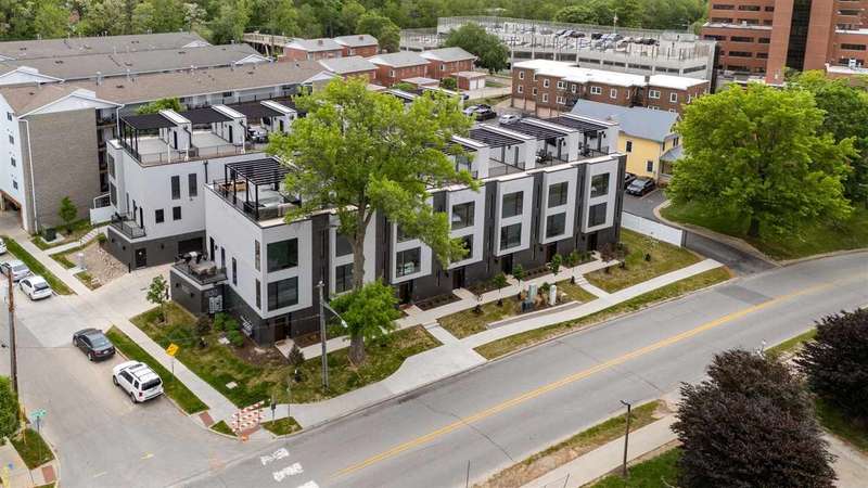 Step into a lifestyle of modern elegance with this nearly-new, barely-lived-in luxury townhome. Perfectly positioned just across from the UI College of Dentistry & only 2 blocks from Carver-Hawkeye Arena, UIHC, and the legendary Kinnick Stadium, this location is as prime as it gets. From the moment you arrive, you're welcomed by private ground-level entrance & attached garage, ensuring privacy, convenience & elevated curb appeal. Inside, the main level impresses with a stylish open-concept layout, featuring a chic half bath, generous living & dining area & a gourmet kitchen complete with abundant cabinetry & pantry space. Upstairs, you'll find 2 spacious bedrooms, 2 full baths & laundry area for ultimate functionality. Then head up to the showstopper: an expansive rooftop patio that feels like your own private sky lounge—ideal for entertaining or unwinding in style, with views that will absolutely wow.