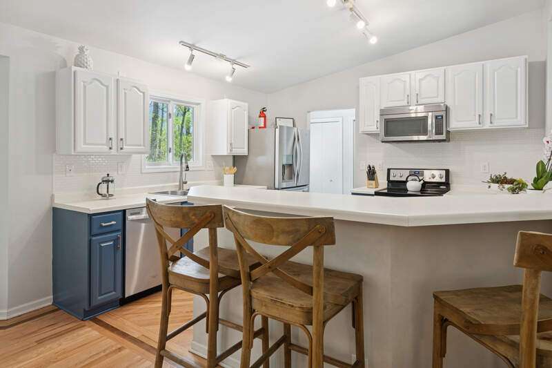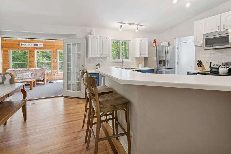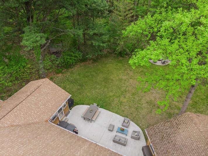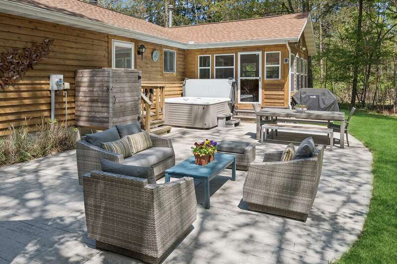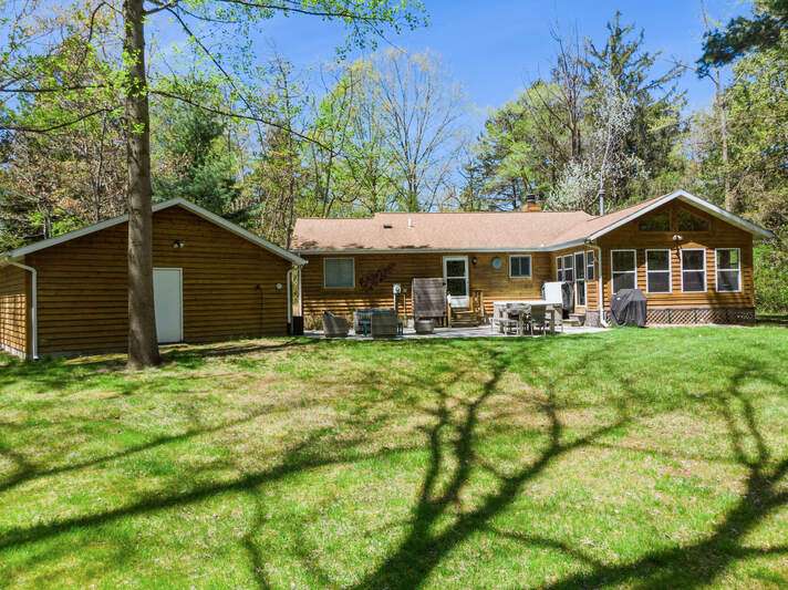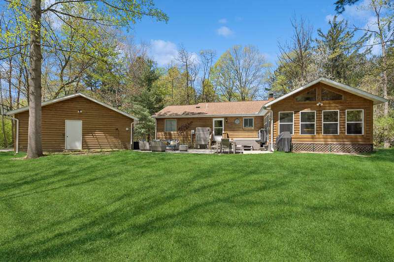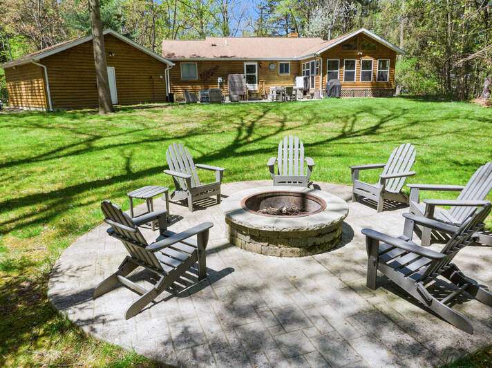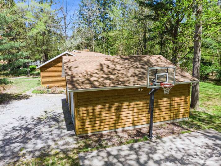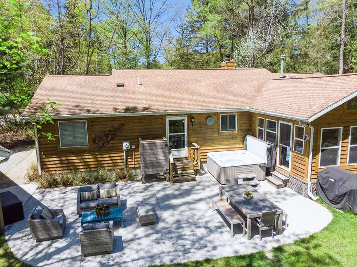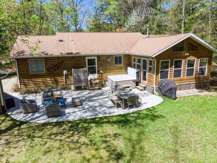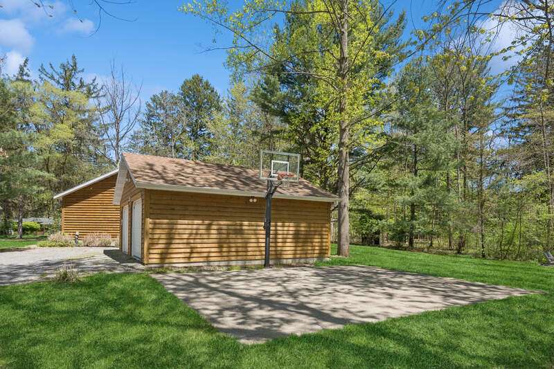 UNICORN ALERT: 2.3 Acres on the lake side of Red Arrow ! This 6 bed (3 up/3 down), 3 bath cedar sided cottage has been updated and refined to allow for the entertainment of crowds or cozy nights around the fire pit. Comfortably sleeps 14 (heads in beds) with expansion opportunities. Three entertaining spaces: Living room, Sun Room and Rec Room. Three full renovated baths + outdoor shower and hot tub. Kitchen fully stocked with service for 18. Miles of counter space and freshly painted cabinets. Rec room with projection screen, ping pong table and second kitchen. 2 car gar with electric charger. Bball court. Walk able to The Historian, Local Pour, Out There & Warren Dunes House is being sold turn key with exceptions. Brilliant/consistent rental history. Broker Owned 10 year VRBO history. 2023 rental rates were $4750/week with turn over on Friday. All appliances Hot water heater and dehumidifier 2016, AC 2022, Hot Tub 2019.