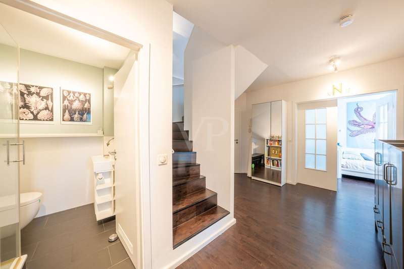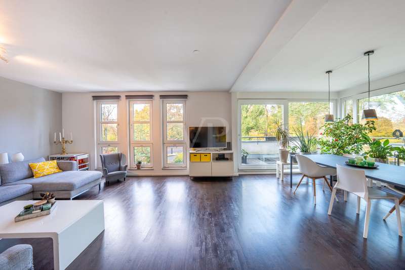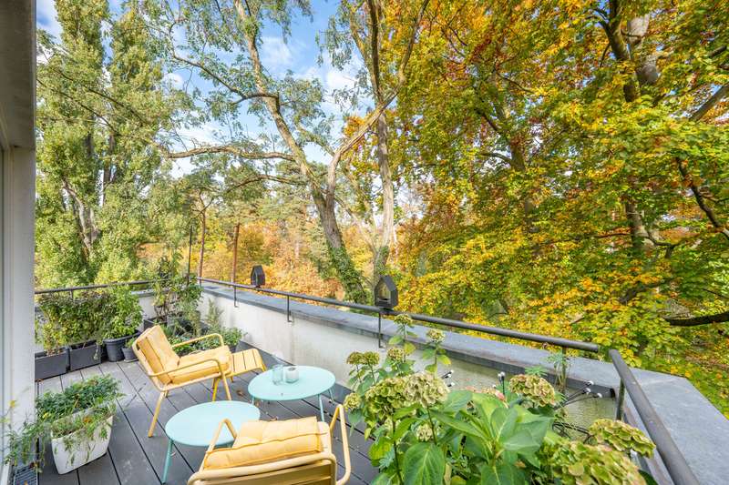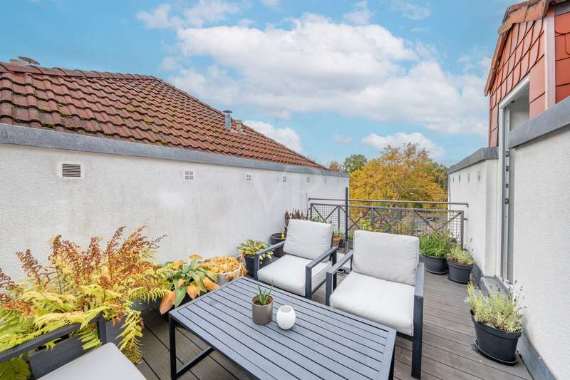 In a sought-after, green location in Berlin-Schmargendorf - near the Grunewald forest, not far from the Roseneck and right next to the idyllic Messelpark - this exceptional top-floor maisonette with a living space of approx. 145.45 m² on two levels awaits you. The apartment is located on the 2nd floor and top floor of a well-kept apartment building and impresses with its spaciousness, light and modern living ambience. A particular highlight are the three terraces - two spacious roof terraces with sweeping views over the treetops and a smaller terrace in front of one of the bedrooms, which offer sunny outdoor retreats at any time of day. The well thought-out floor plan comprises a total of 4.5 rooms, including a spacious living and dining area with an open-plan kitchen, three bedrooms and an additional half-room, which is ideal as a study or guest room. Two tastefully furnished bathrooms - one on each level - underline the high level of living comfort. A practical storage room completes the offer. The apartment also includes a parking space in the building's own underground garage and a spacious, windowed cellar room that can be used for a variety of purposes. The well-connected location between Schmargendorf, Grunewald and Dahlem, the proximity to Messelpark and the high-quality living environment make this property an ideal home for discerning city dwellers who appreciate spaciousness, brightness and quality of life at a high level. We would be happy to show you this attractive apartment in an individual viewing.
