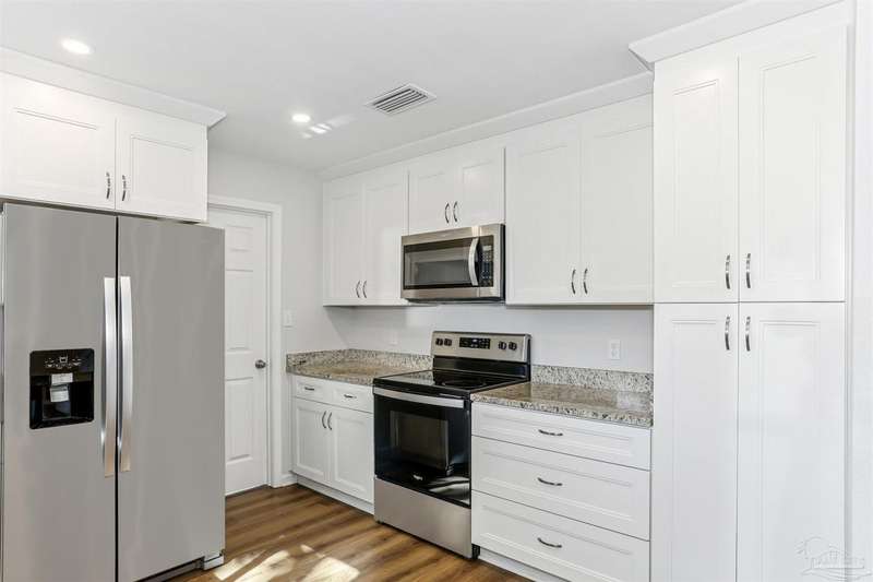 Gulf Breeze Living at Its Best! This updated 3BR/2BA home is move-in ready with all the major items taken care of-new cabinets, countertops, and flooring, plus new windows (2025), roof (2021), HVAC (2021), water heater (2021) and pool resurfacing (2025). Step outside and enjoy your own private backyard oasis with an inground pool-perfect for endless summer fun! Located in the heart of Gulf Breeze proper, you'll be within walking distance to the Recreation Center and Shoreline Park, with top-rated Gulf Breeze schools just a short bike ride away. Centrally situated between downtown Pensacola and Pensacola Beach, this home combines small-town charm with easy access to all the amenities of coastal living.