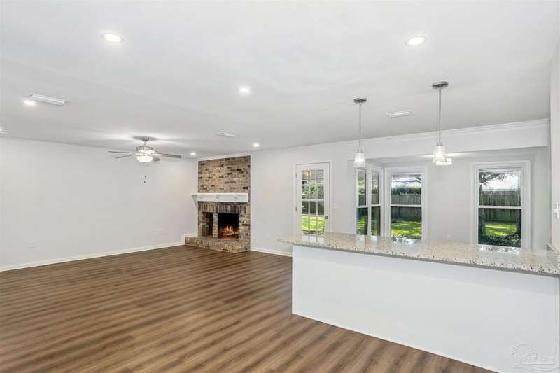 Gulf Breeze Living at Its Best! This updated 3BR/2BA home is move-in ready with all the major items taken care of-new cabinets, countertops, and flooring, plus new windows (2025), roof (2021), HVAC (2021), and water heater (2021). Step outside and enjoy your own private backyard oasis with an inground pool-perfect for endless summer fun! Located in the heart of Gulf Breeze proper, you'll be within walking distance to the Recreation Center and Shoreline Park, with top-rated Gulf Breeze schools just a short bike ride away. Centrally situated between downtown Pensacola and Pensacola Beach, this home combines small-town charm with easy access to all the amenities of coastal living.