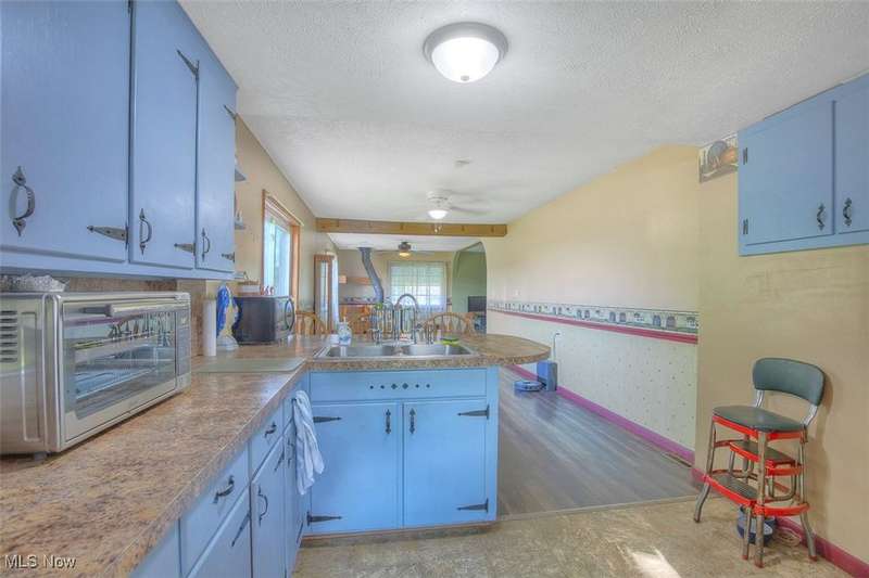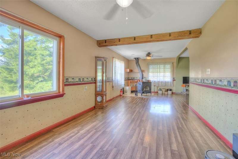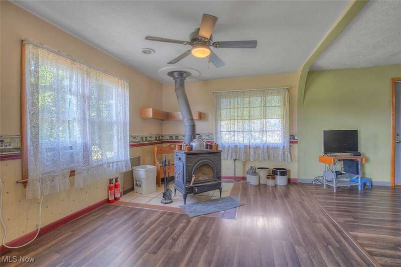 Welcome to this spacious, 4-bedroom, 2 full bath, Cape Cod home, situated on 6.09acres of land in Brighton Township. Approximately 4 of the acres are wooded. There are 2 bedrooms on themain floor and two bedrooms with an alcove on the second floor. The spacious kitchen anddining room/area are separated by a breakfast counter/bar. Appliances stay in the kitchen that features linoleum floors. The dining room area and living room are plank laminate wood floors. The dining room offers a beautiful wooden beam in the ceiling. The house can be warmed by the wood burning stove located on the main floor, in the corner of the house where the dining room connects to the living room. The bathroom flooring on the main floor is linoleum and the bathroom in the basement has a cement floor. You willhave the convenience of a laundry chute from the main floor bathroom into the basement laundry/utility room.The full basement is partially finished with two divided and carpeted rooms along with a full bathroom, carpeted laundry/utility area. A second wood burner can be added in the basement. The piping and the chimney are installed and are ready for use, but a wood burner is not installed. Public water is provided through Rural Lorain County Water Authority. There is a cistern on the property next to the house but it has been disconnected. The sewer is septic with a holding tank. There is a barn on the property that at one time was used for a horse barn. One-half of a corral fence surrounds the area behind the barn. The fence needs some TLC as the current owners didn't use it, so no work was ever put into it. The home has a metal roof that is 2 years old, a 80-gallon hot water tank, a propane furnace that is approximately 4 yrs old, a double sump pump that can be foundbehind the basement door. The owner owns their propane tank costing approximately $900 to fill. Enjoy the deck with a lovely view! Call for an appointment to tour this home.