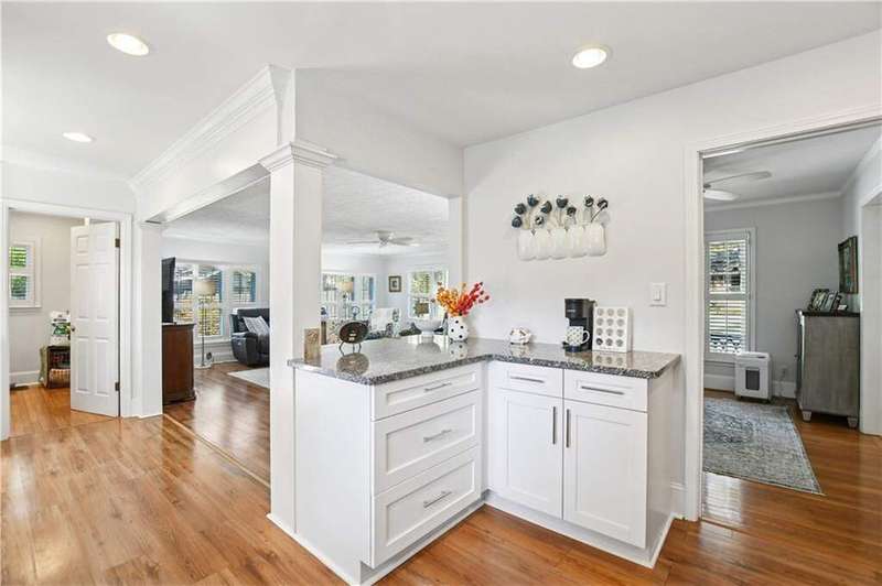 Welcome home to a true gem in the Garden District of Alpharetta, where this beautifully updated ranch home exudes charm throughout. Nestled on over half an acre, this residence is just walking distance from downtown Alpharetta, offering unparalleled convenience to the city's shops, farmer's markets, amphitheater, and restaurants. Minutes away, you'll find the Avalon, Wills Park, historic Crabapple, and the home is within the acclaimed Cambridge High School District. The exterior of this home radiates elegance with its freshly painted brick, well-maintained landscaping, a newer architectural roof, gutters, and a newly repaved concrete driveway. Enjoy serene evenings on your back porch or sunroom with panoramic views, tranquility, and privacy. Inside the home, the open floor plan seamlessly connects to a fully remodeled kitchen, showcasing modern finishes, custom cabinetry, backsplash, custom-built bar, and upgraded stainless steel appliances. A spacious laundry room on the main level provides ample storage, blending functionality with style. The luxurious primary suite features a newly expanded and remodeled bathroom with a tiled walk-in shower and double vanities. The guest bathroom is equally stunning, with a contemporary walk-in tile shower. Recent updates extend to essential systems, including a HVAC, a full-house dehumidifier, a new water heater, and spray foam insulation, all under 3 years old. The basement and crawl space have been completely waterproofed and reinforced with additional support beams. The unfinished basement is equipped with central heating and air, ready for you to customize, envision, and make your own. This home offers a rare blend of modern luxury and historic charm in a prime location. Come tour this property that is beautiful as is or could easily be expanded for a growing family.
